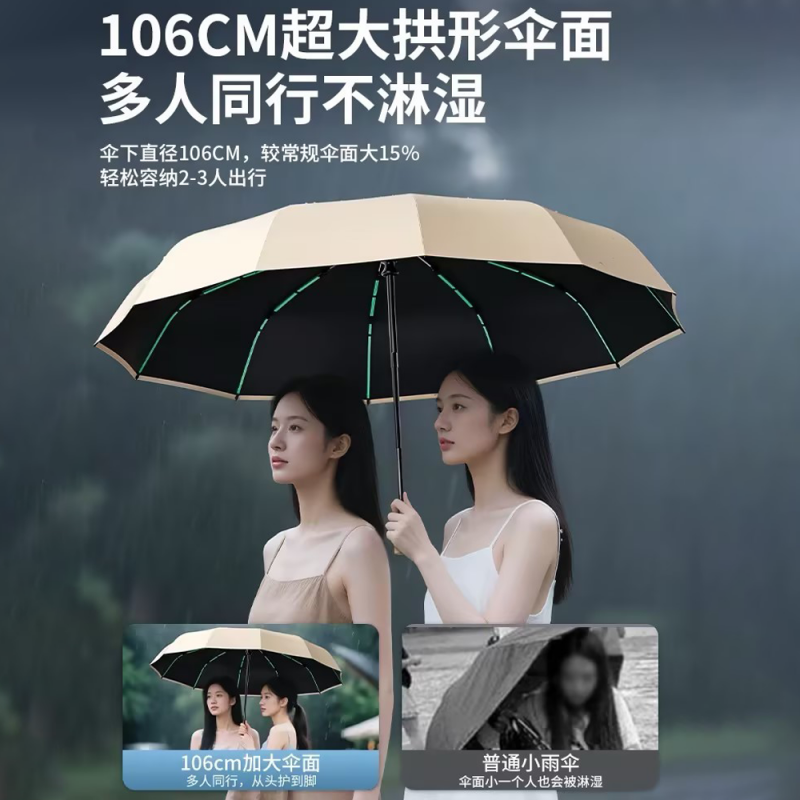雨宝全自动雨伞男士加大加厚加固双人男生大号暴雨专用女折叠遮阳