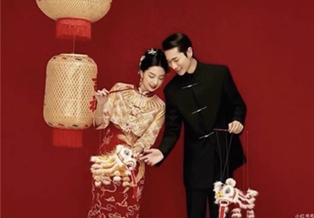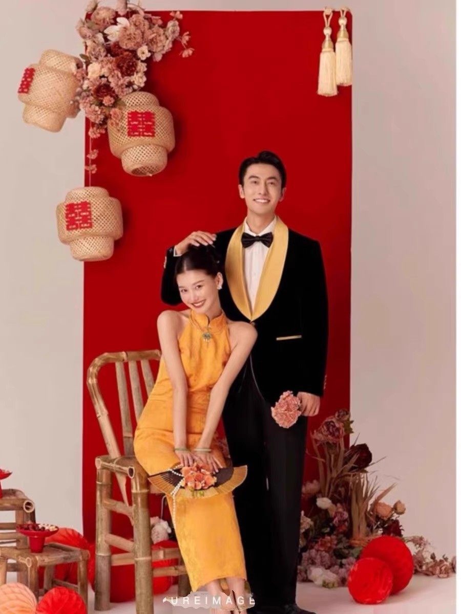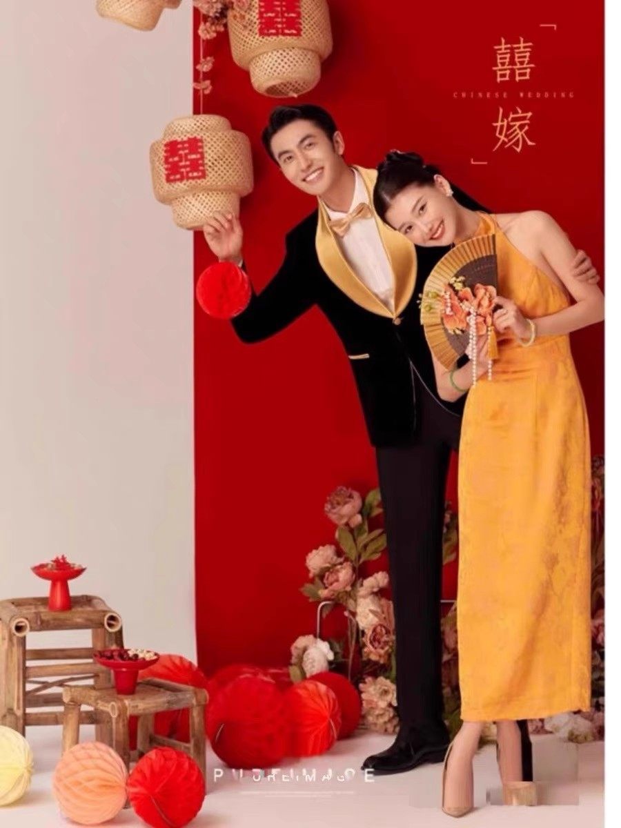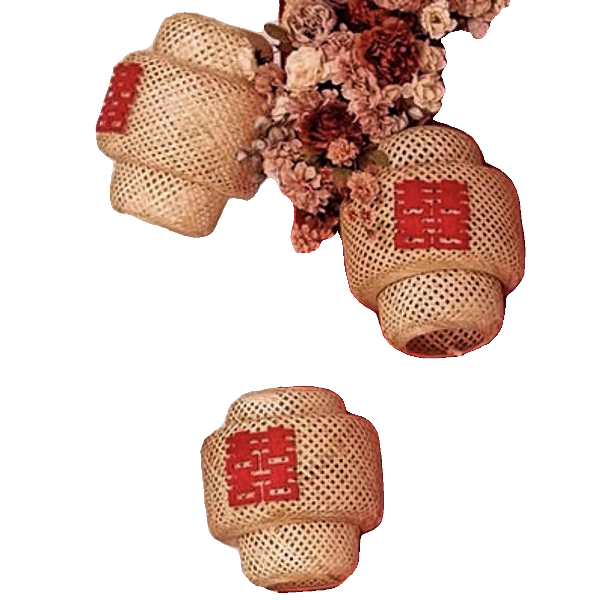 新中式婚纱摄影喜嫁风拍摄道具藤编镂空灯笼红背景装饰花蜂窝灯笼