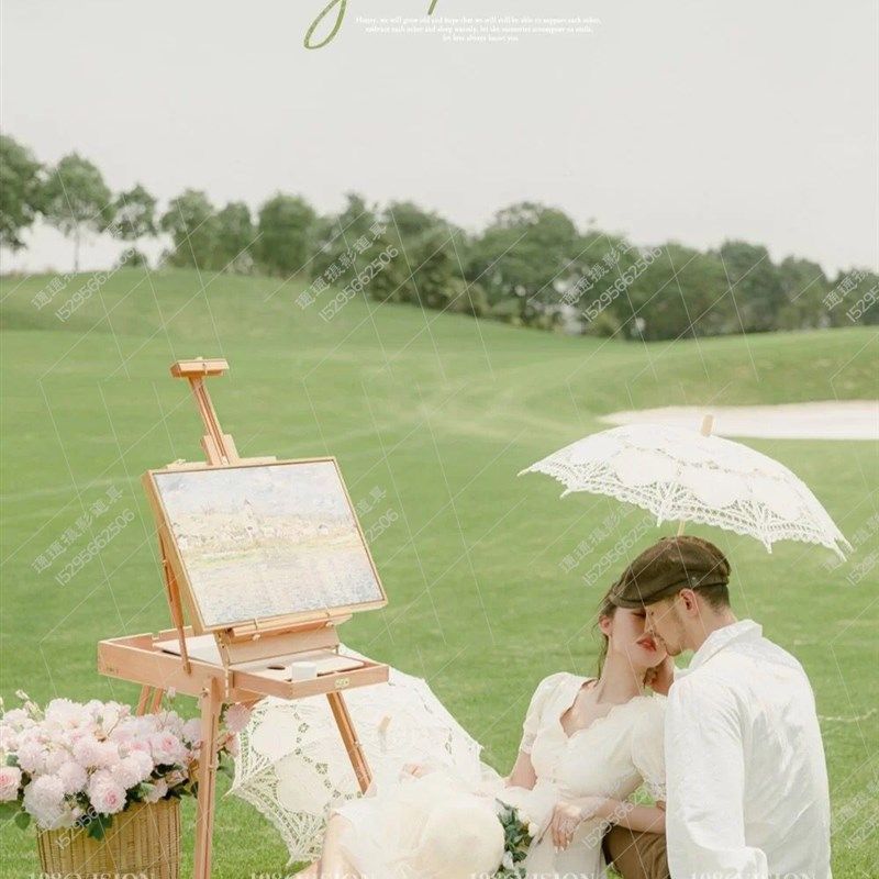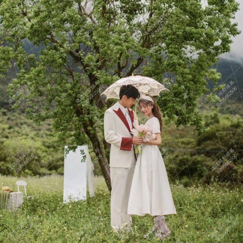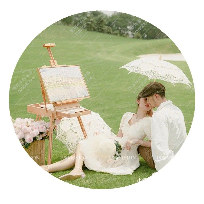 速发新婚纱摄影球画风格旅拍小清新蕾丝伞装花背篓样片道具园架网