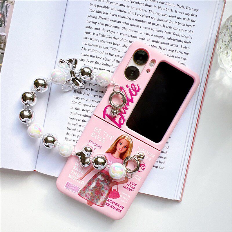 ins日韩芭比娃娃适用于OPPOfindN3flip手机壳折叠屏Find N2flip手链磨砂N2 flip保护套少女粉色款