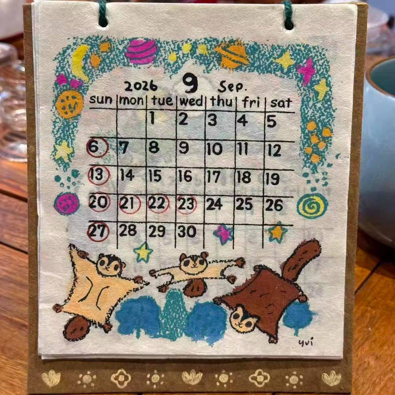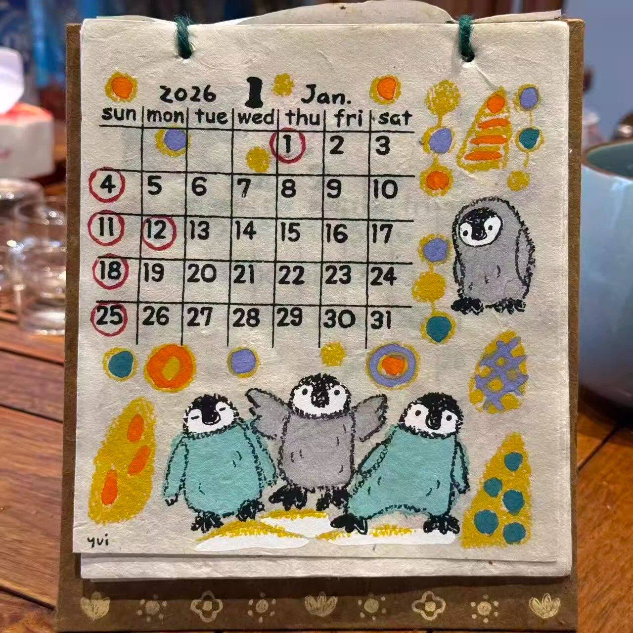 2026年尼泊尔日历小猫涂鸦插画台历年历小动物月历装饰挂件送礼物