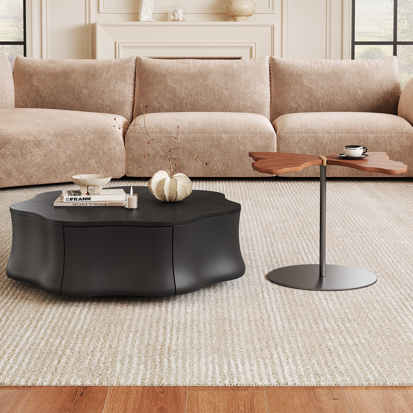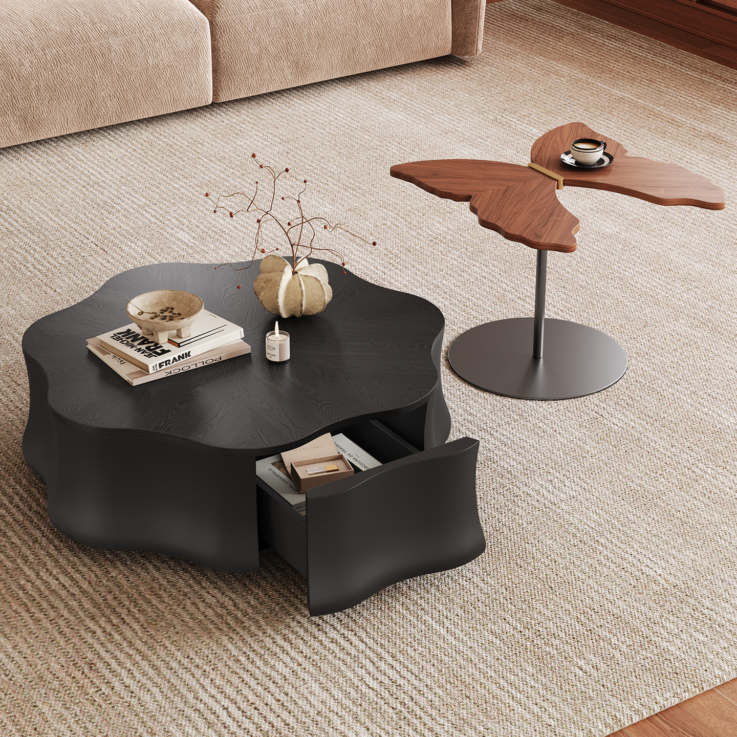 意式极简茶几客厅家用2026新款储物异形花瓣蝴蝶高端艺术感小茶几