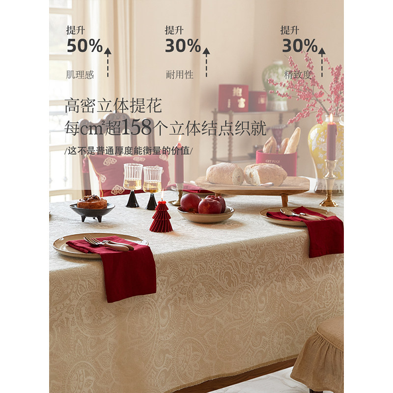 蜡笔派莉吉亚立体提花纯色餐桌桌布防水百搭轻奢高级感长方形定制