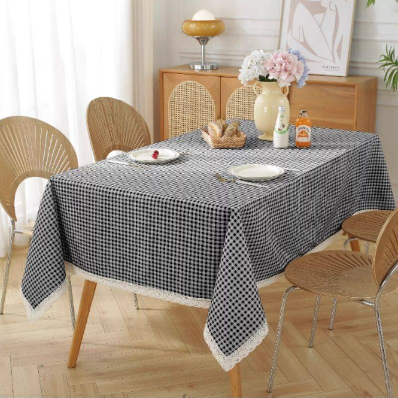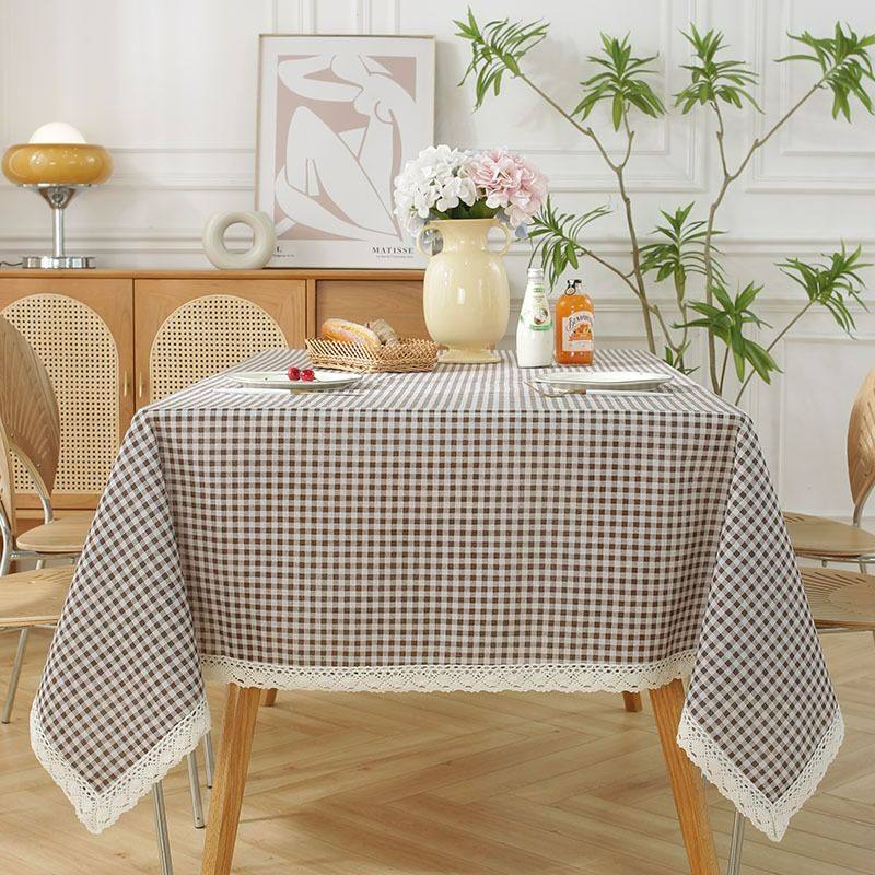 ins棉麻花边桌布布艺日系格子北欧风小清新长方形餐桌茶几书桌垫