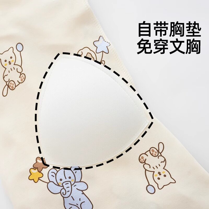纯棉带胸垫睡衣女2025新款春秋季长袖套装可爱卡通韩版家居服秋冬