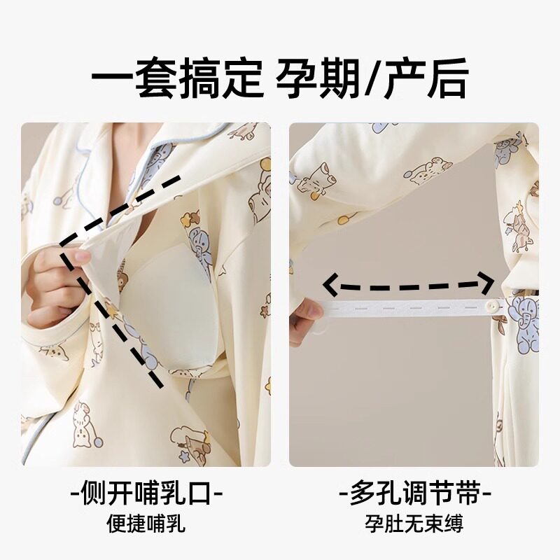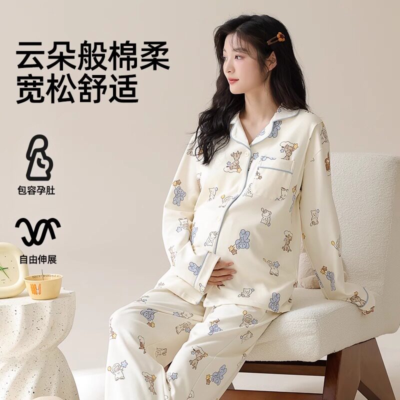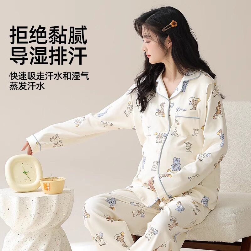 月子服夏薄款产后纯棉吸汗带胸垫哺乳睡衣怀孕产后孕妇喂奶家居服