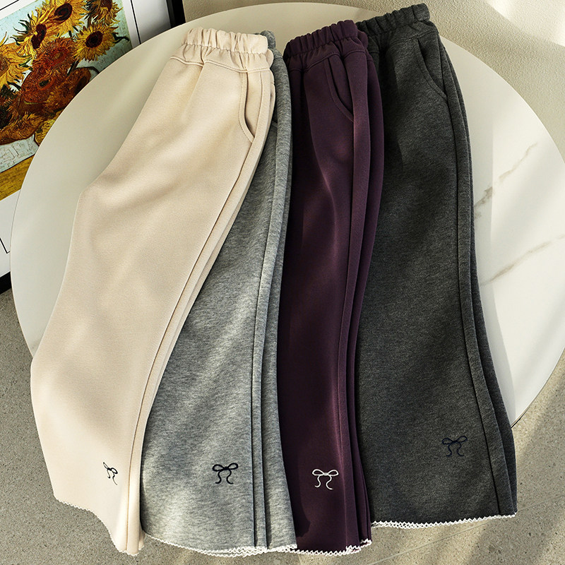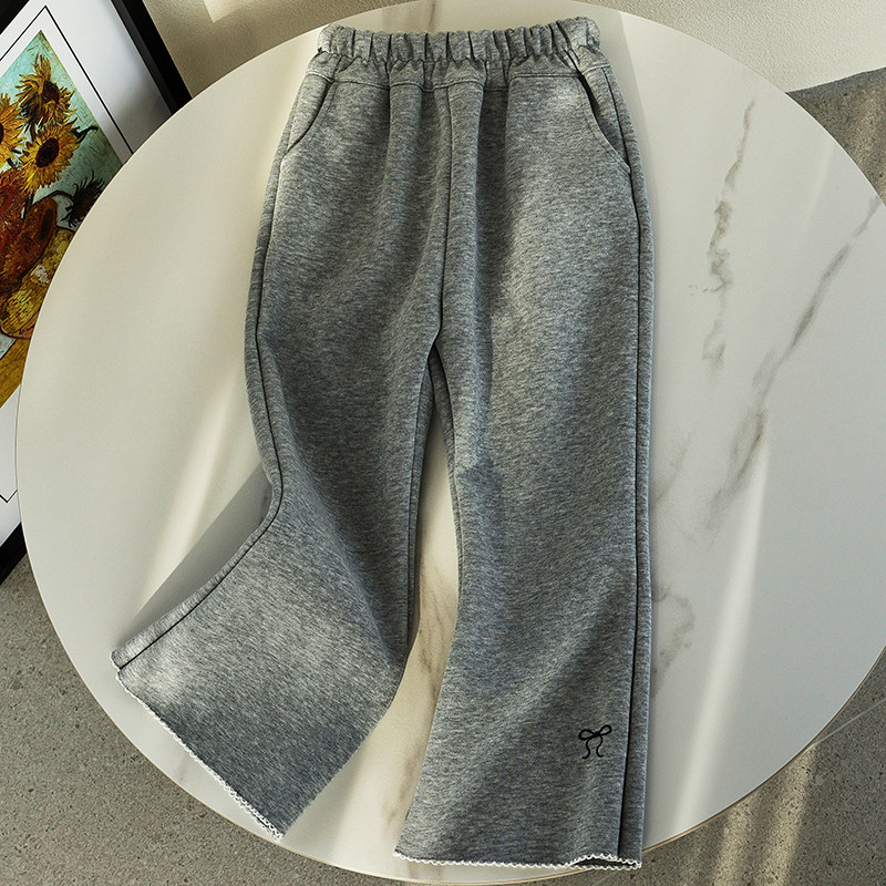 蔚未来女童裤子秋装2025新款童装儿童洋气喇叭裤女大童花边休闲裤