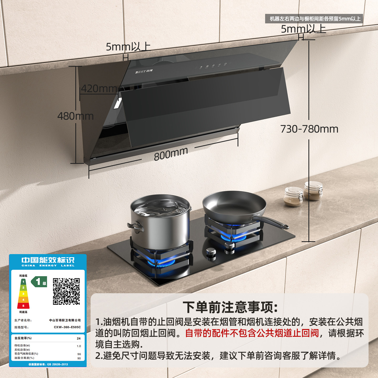 华帝百得侧吸油烟机官方旗舰店厨房家用抽油烟机自动清洗E505C