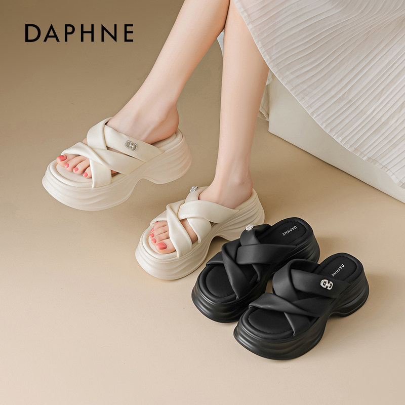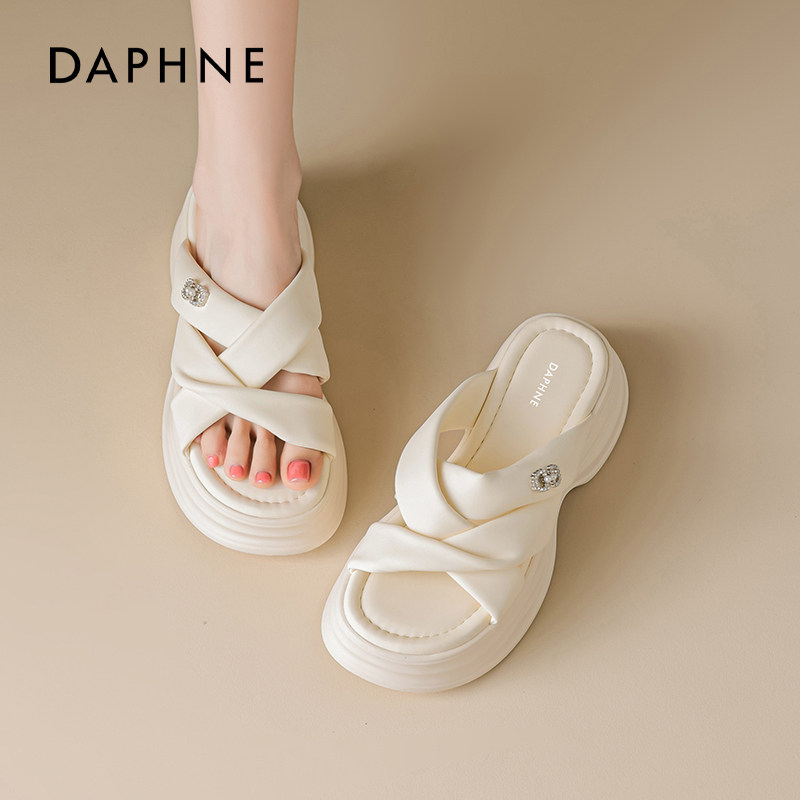 达芙妮厚底拖鞋女2026新款夏季外穿松糕凉拖鞋软底海边绝美一字拖