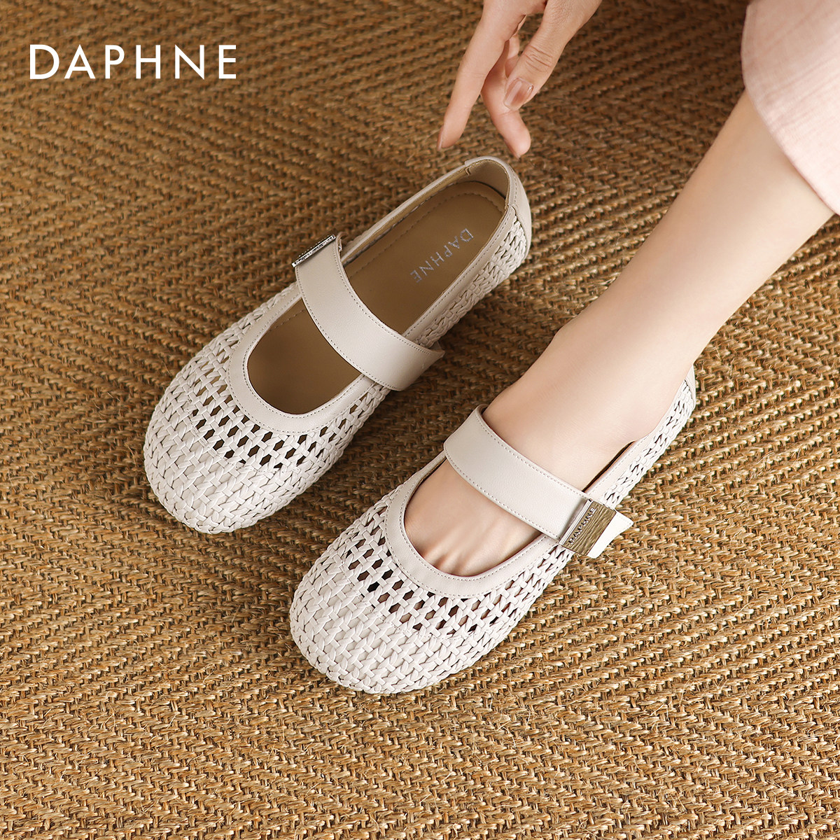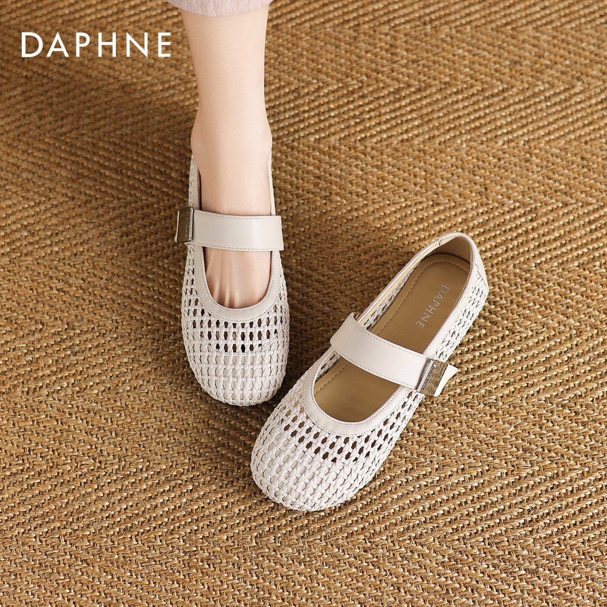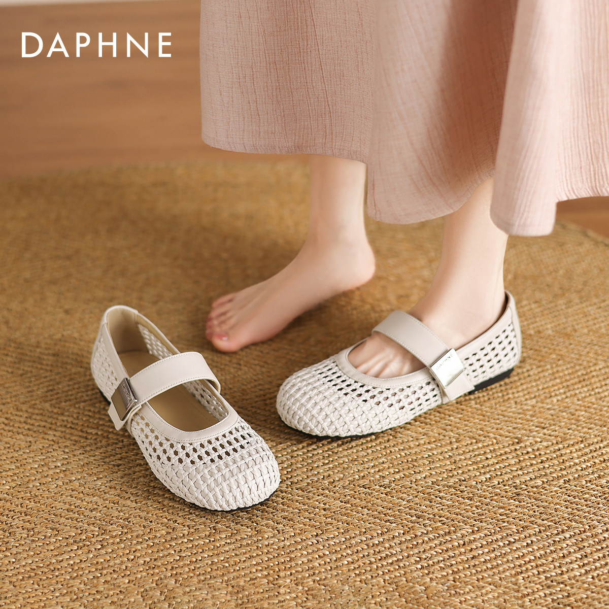 达芙妮镂空凉鞋女款2026新款夏季外穿编织平底单鞋法式玛丽珍女鞋