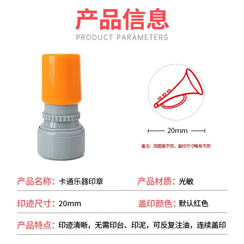 卡通乐器印章幼儿园小朋友学习辨别乐器光敏印章吉他古筝钢琴
