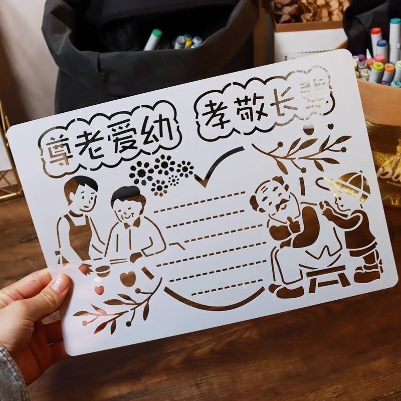 家风家训手抄报模板8K镂空小学生尊老爱幼孝敬长辈文明A4绘画小报