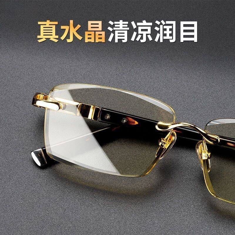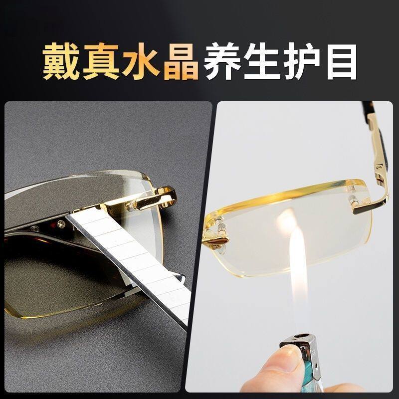 东海水晶眼镜石头竹叶青老花眼镜中老年高清无框高级护目养眼