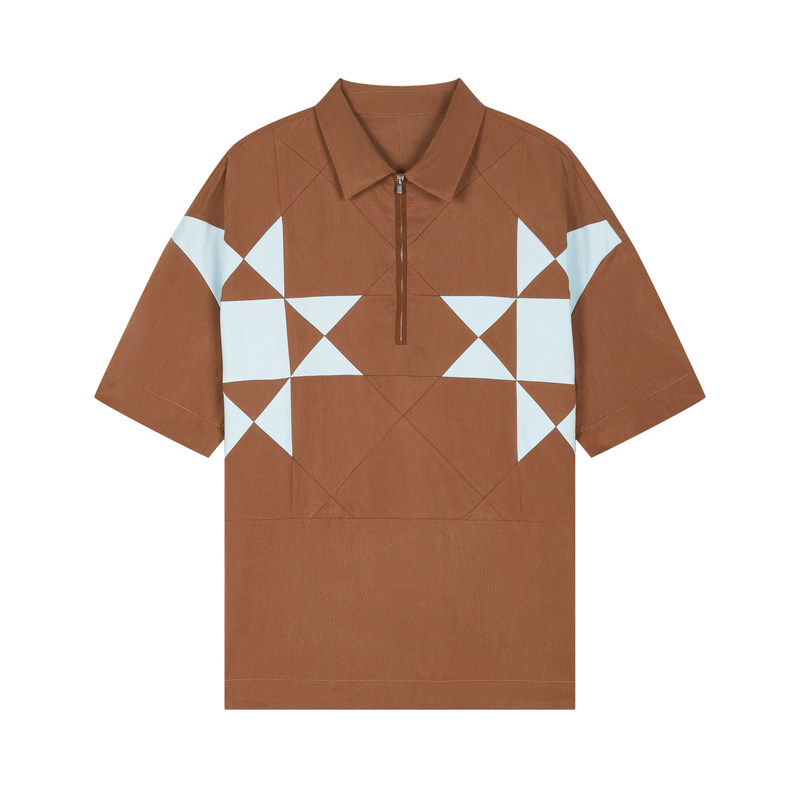 速写奥莱outlets男装春夏折扣新款衬衫翻领套头拼色短袖时尚衬衣