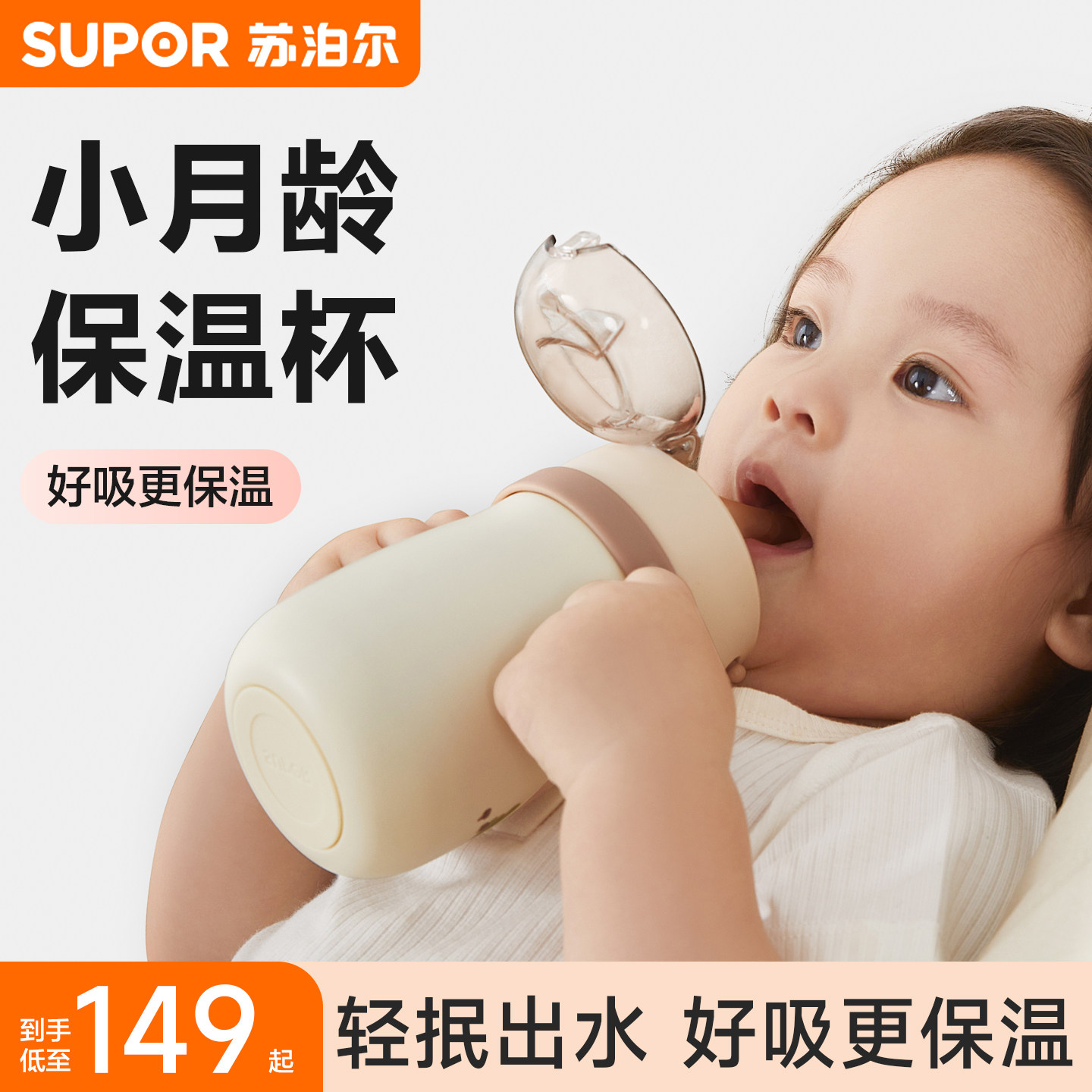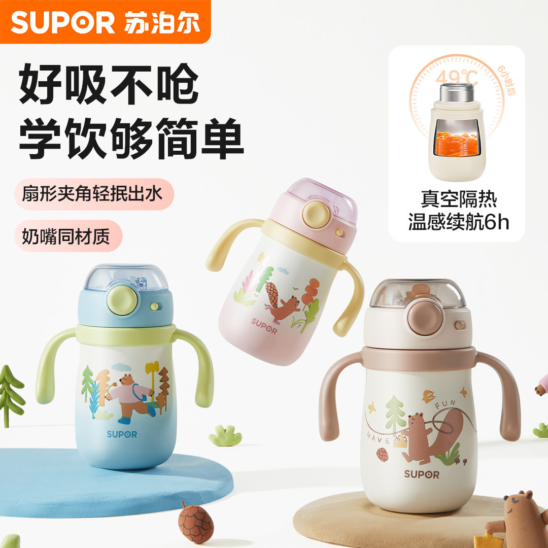 【小月龄专用】苏泊尔婴儿保温杯宝宝水杯保温外出儿童吸管学饮杯