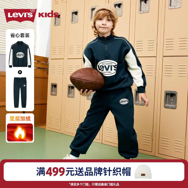 【加绒】Levis李维斯儿童运动套装男童卫衣2025冬装新款长裤童装