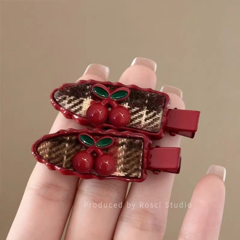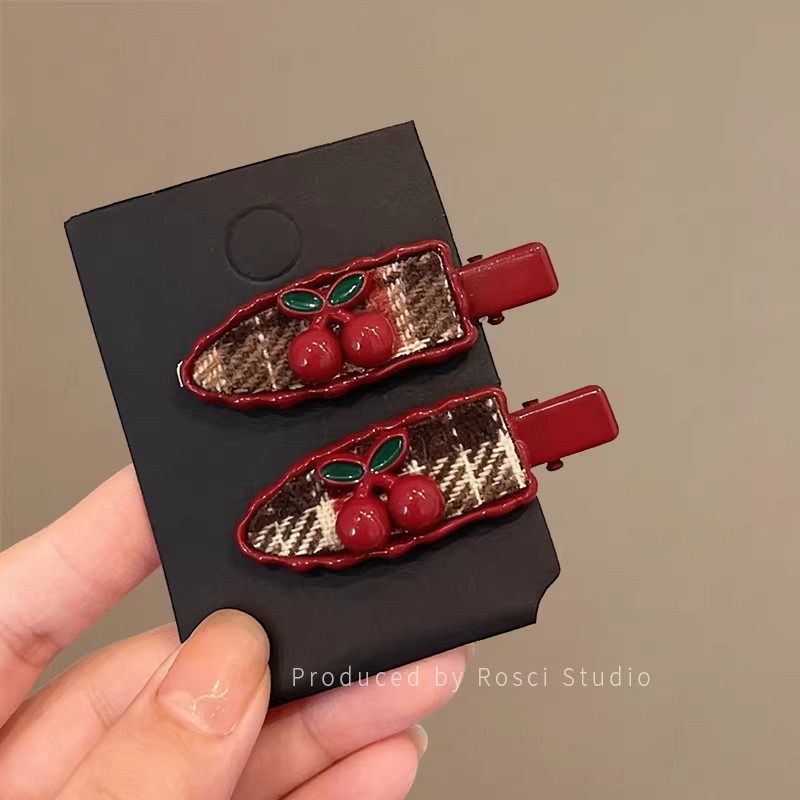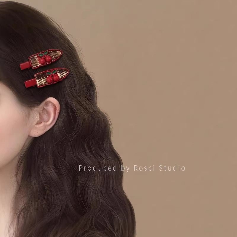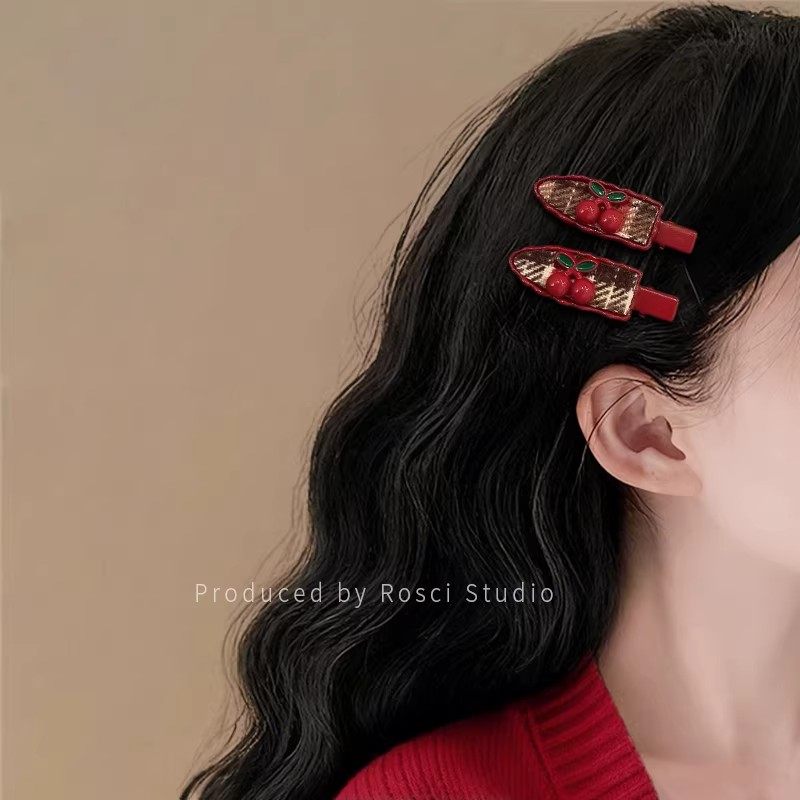 新年红色樱桃发夹女刘海侧边夹子无痕碎发鸭嘴夹2025新款高端发饰