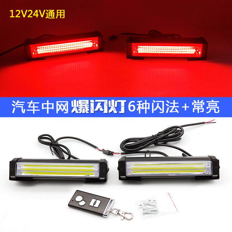 车载中网爆闪灯无线遥控12-24v警示灯一拖二拖四COB日行灯开道灯