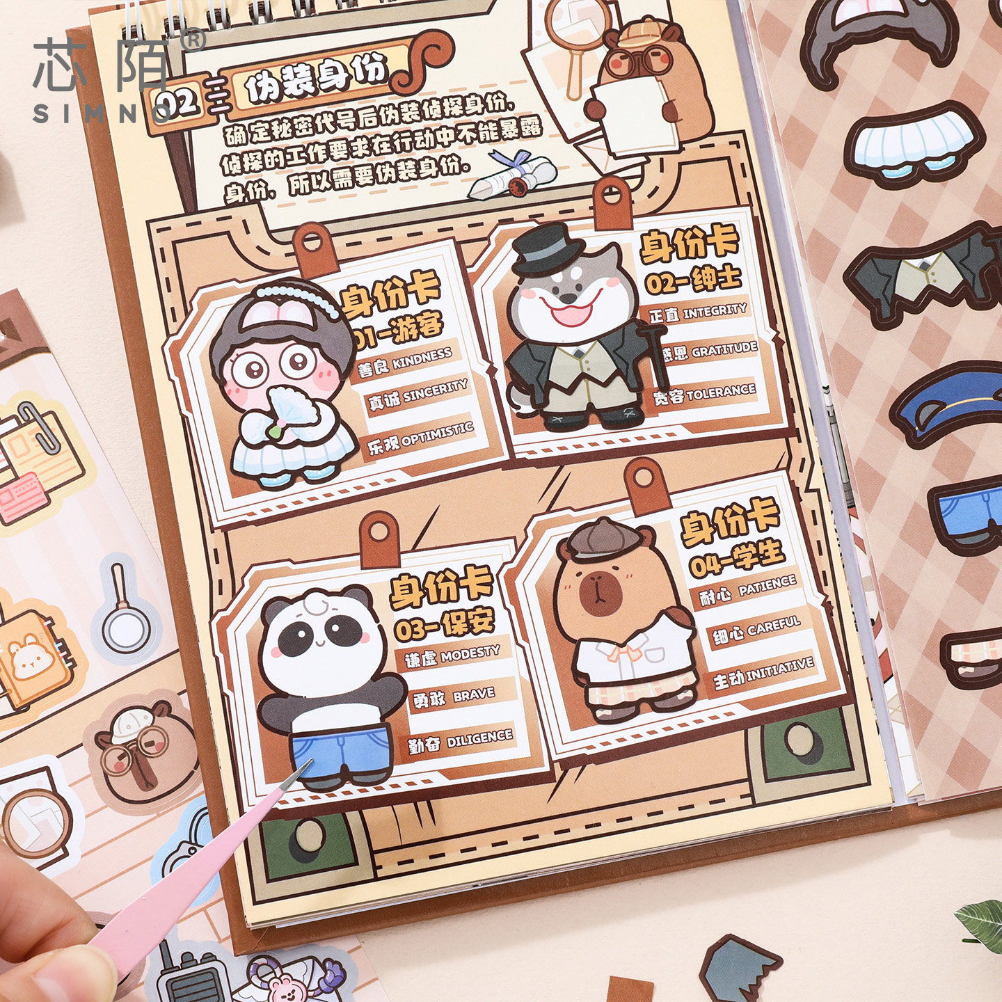芯陌侦探闯关游戏贴纸本安静书新款女孩卡皮巴拉高颜值可爱卡通小儿童手工diy贴纸玩具益智趣味好玩麻薯探案