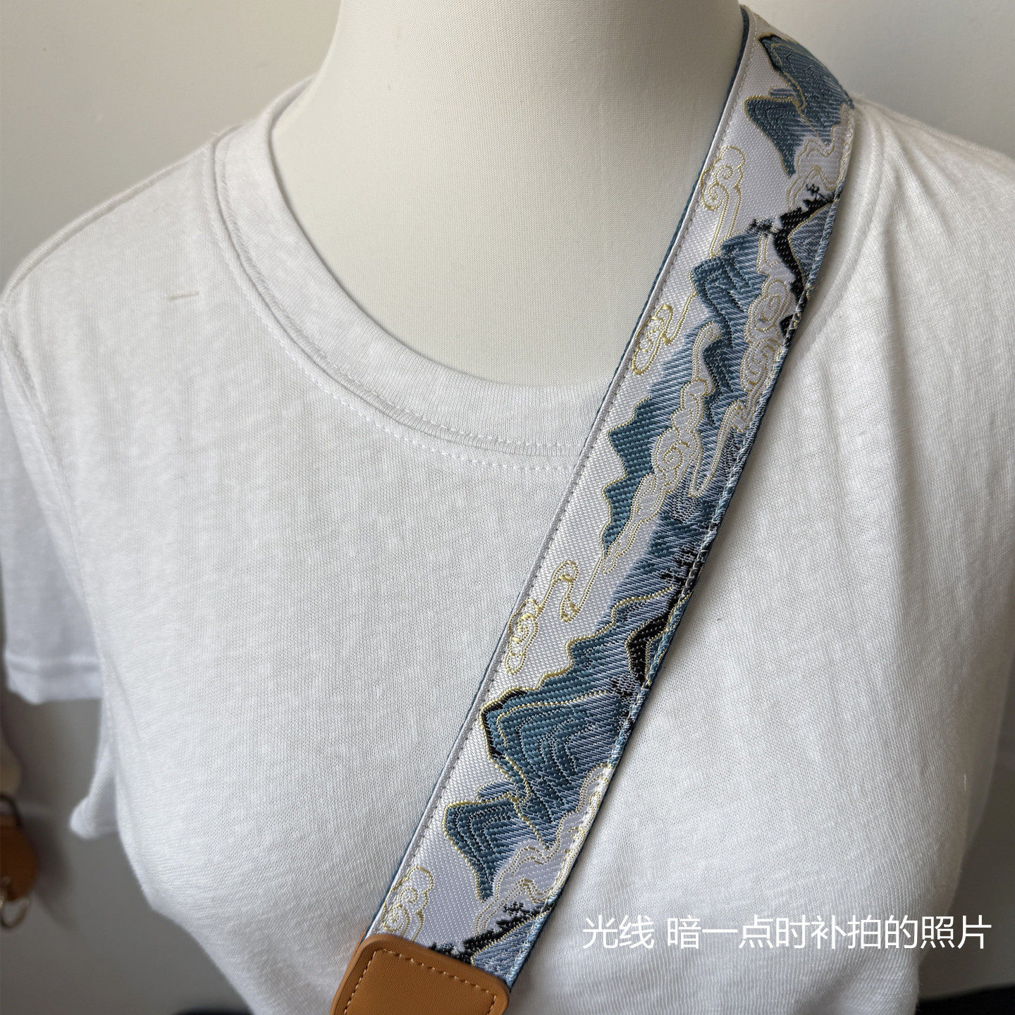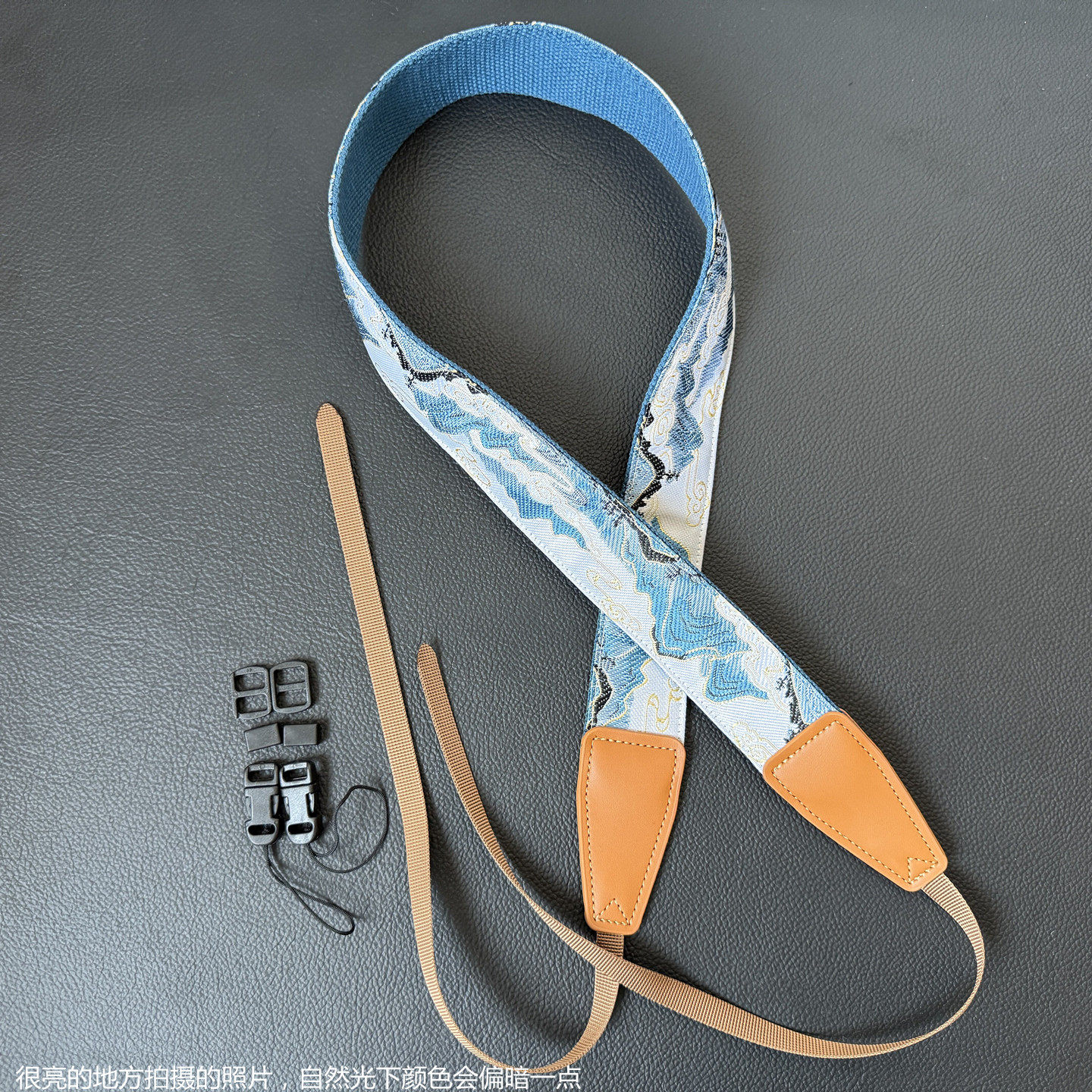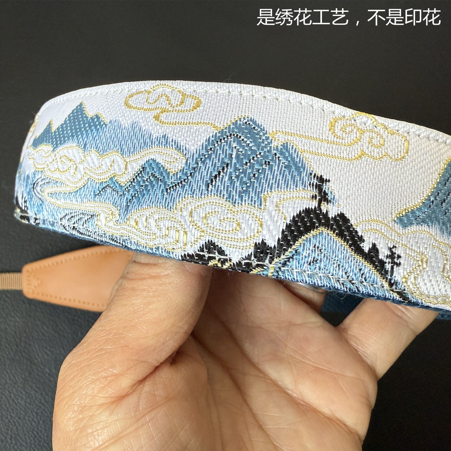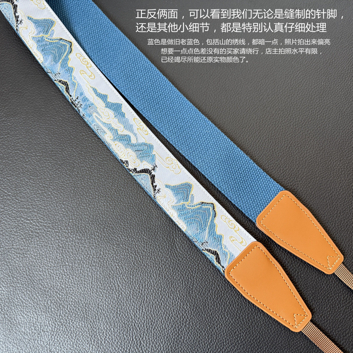 千里江山中式写意山水刺绣相机背带原创真皮复古减压微单单反挂绳
