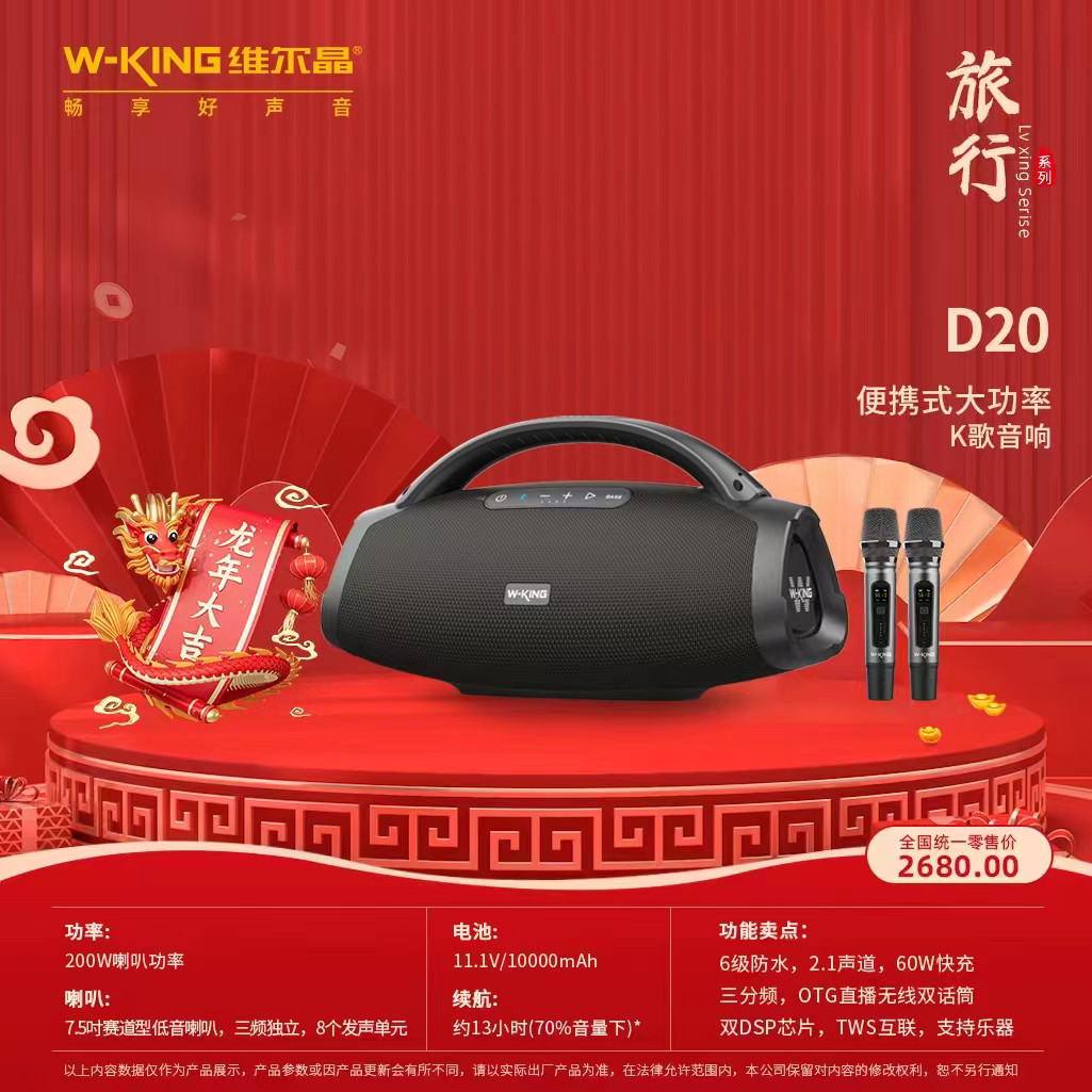 正品维尔晶D20新款蓝牙音响便携式露营低音炮看电影高配乐器弹唱