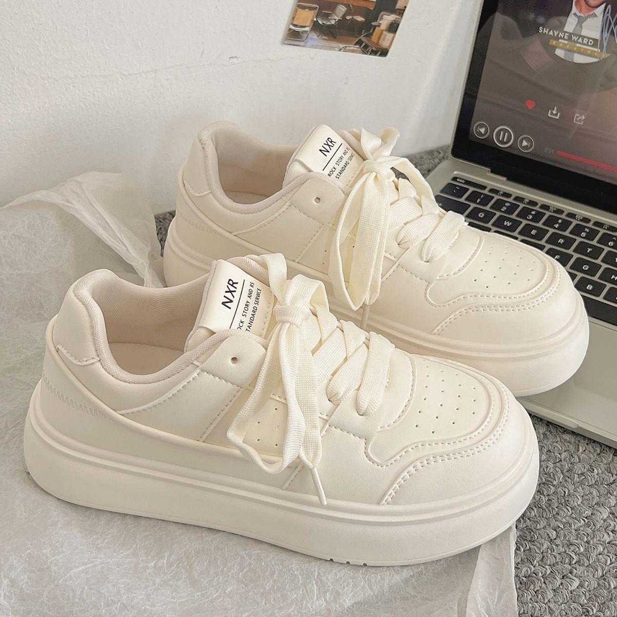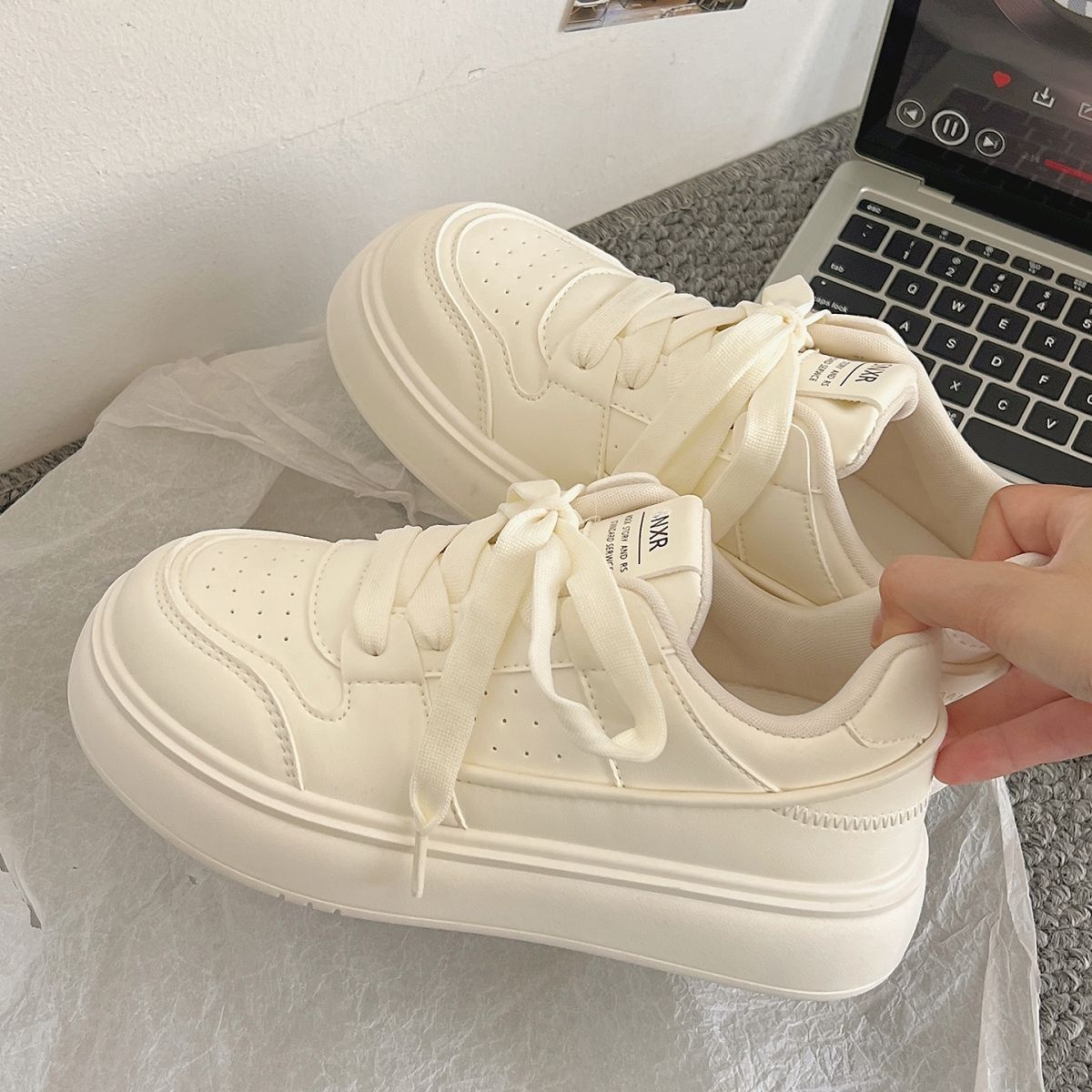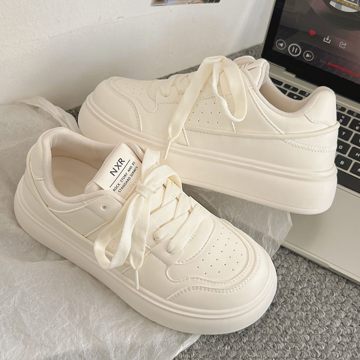 米白色原创小众厚底面包鞋女百搭运动休闲板鞋学生小白鞋2025新款