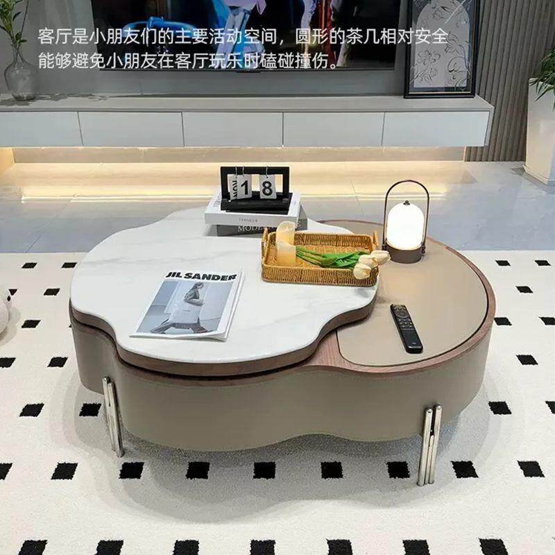 2025新款客厅升降茶几微晶石马鞍小户型家用极简设计师北欧风