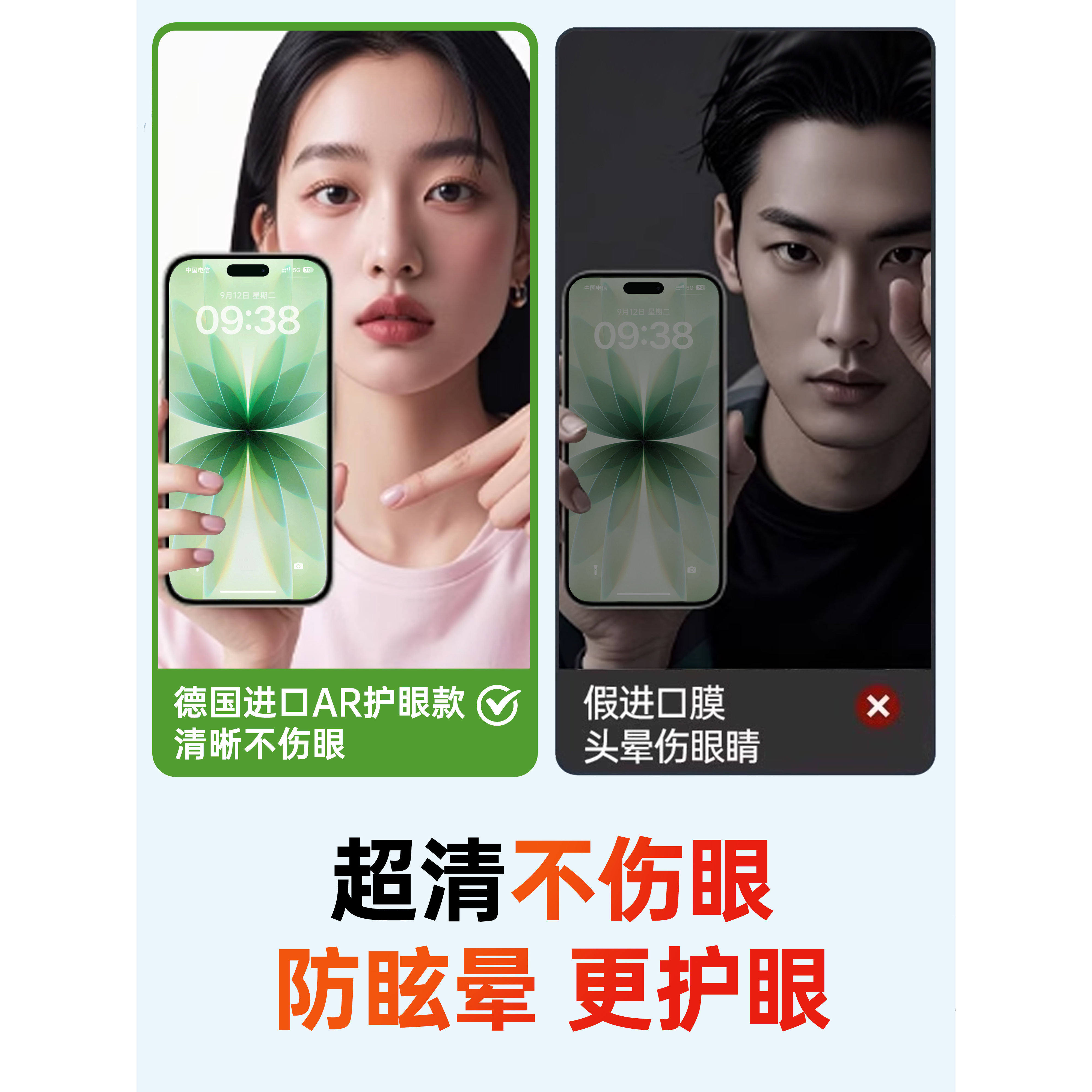 【超越AR德国护眼】动派适用苹果17钢化膜iphone16promax手机膜15抗反射13防蓝光14防窥12贴膜AR增透无尘仓