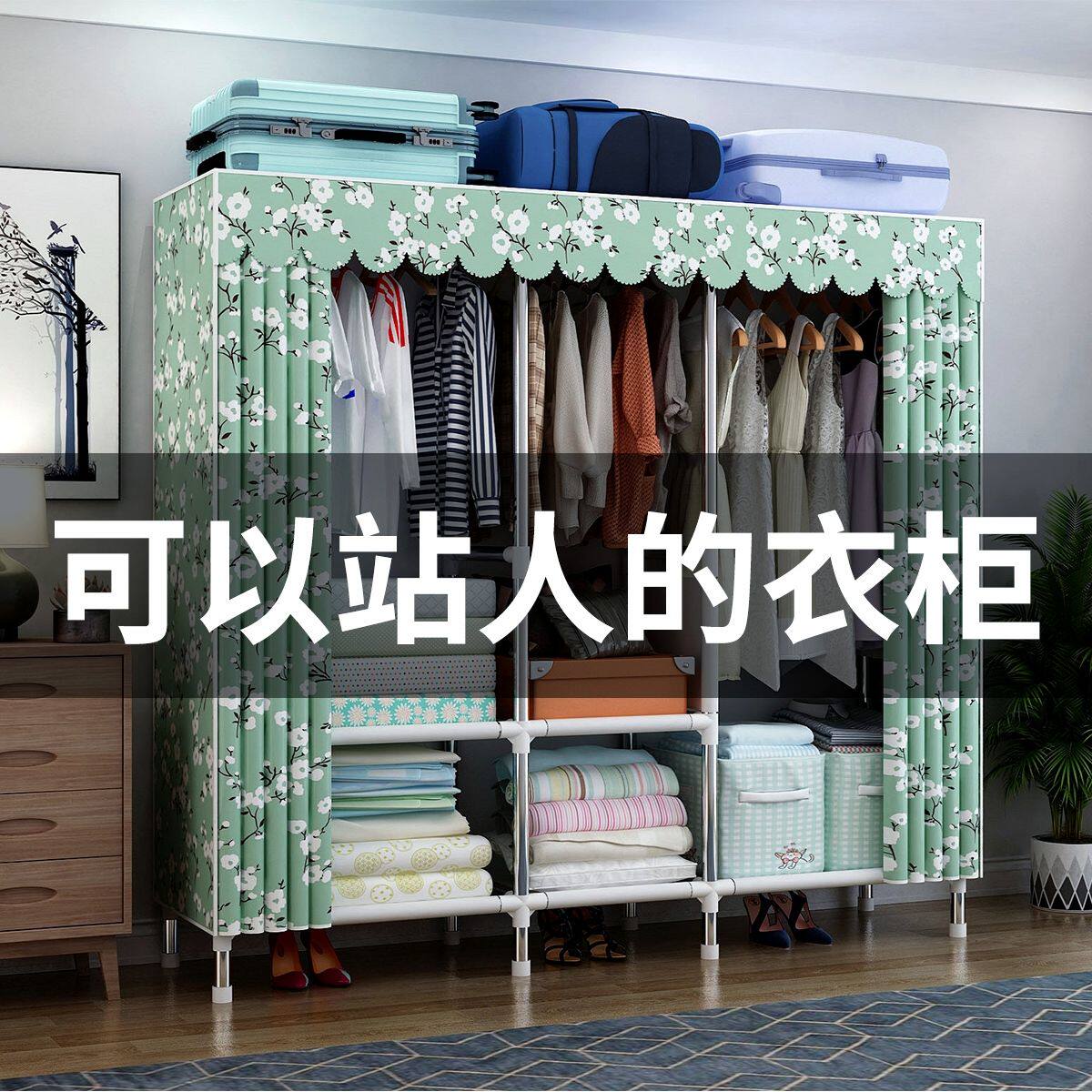 简易衣柜家用卧室布衣柜钢管加粗加固衣橱收纳架子全钢架出租屋
