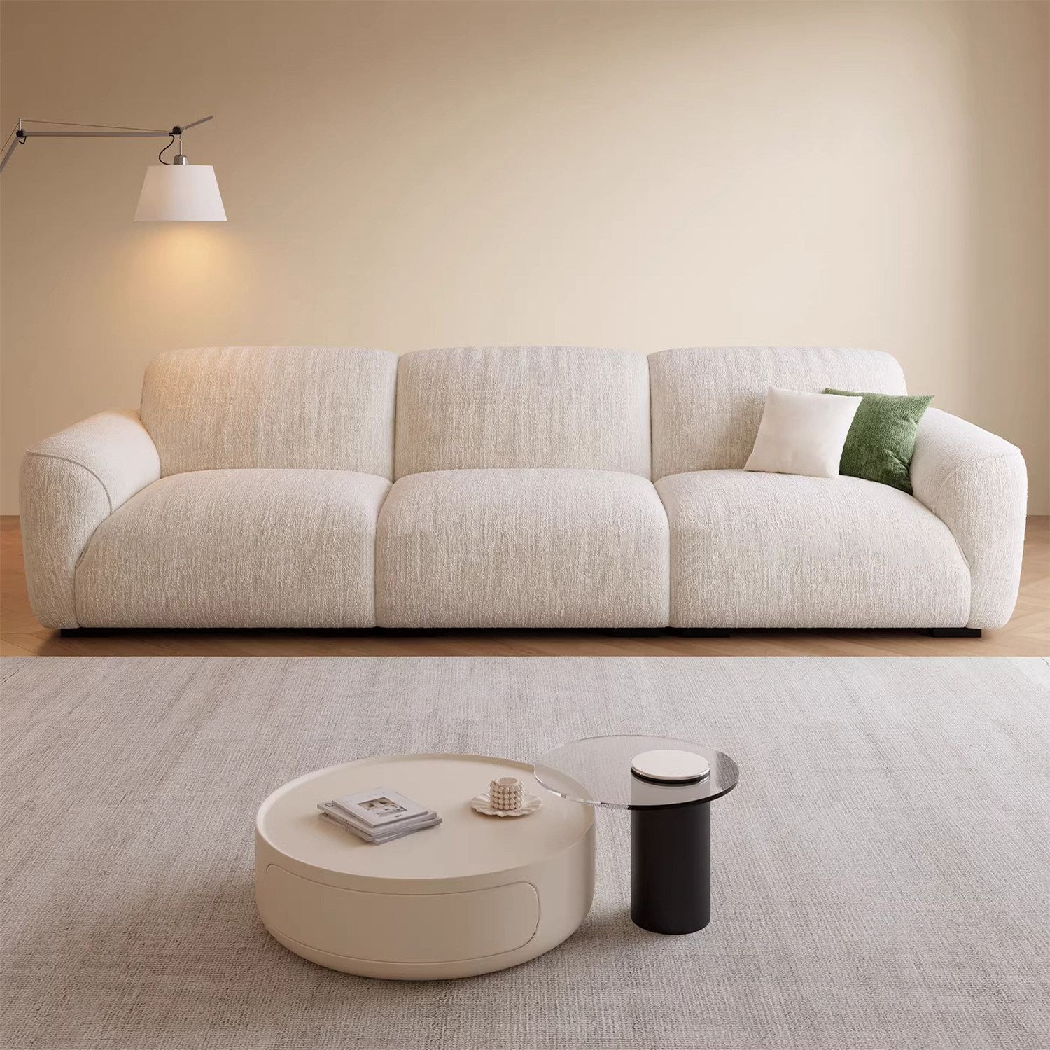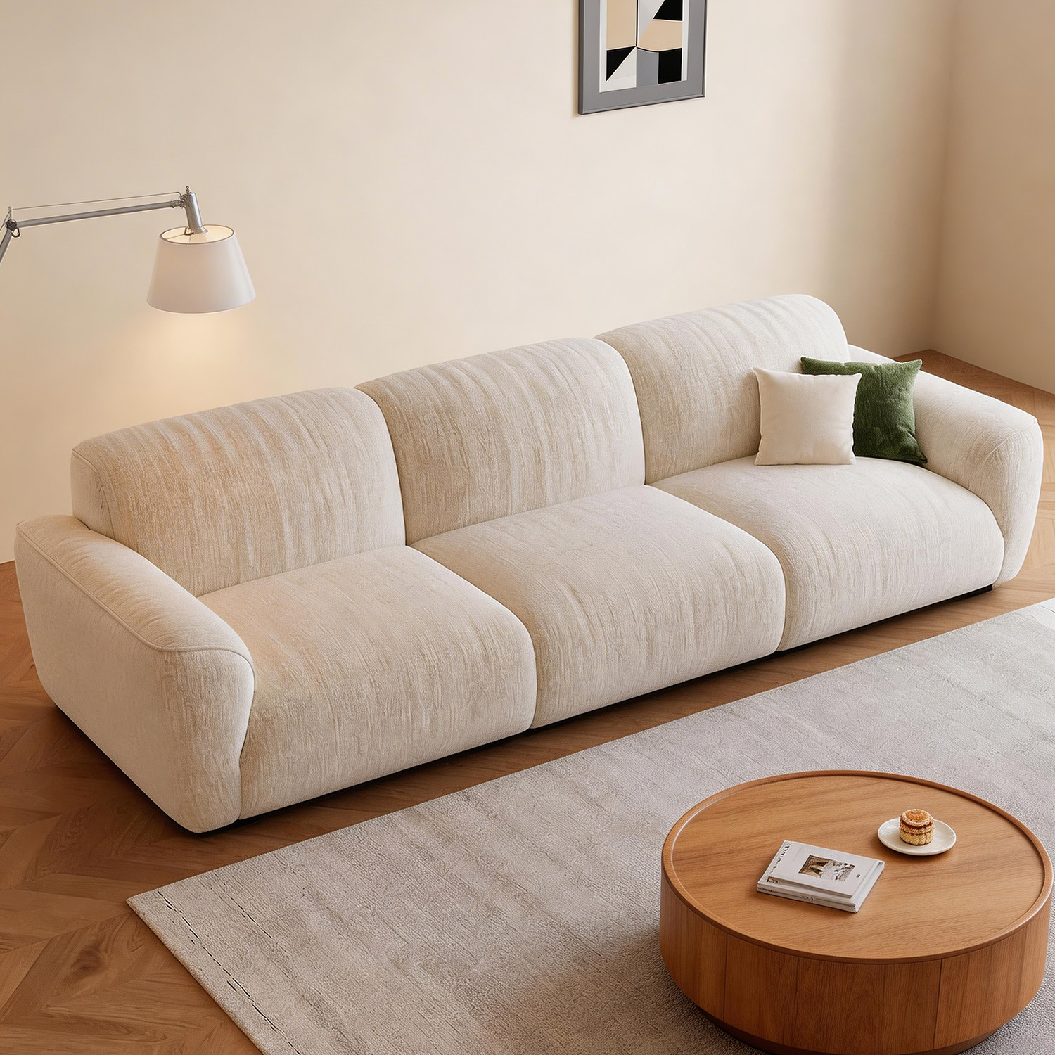奶油风布艺沙发客厅2025新款小户型家用可拆洗三人位直排云朵沙发