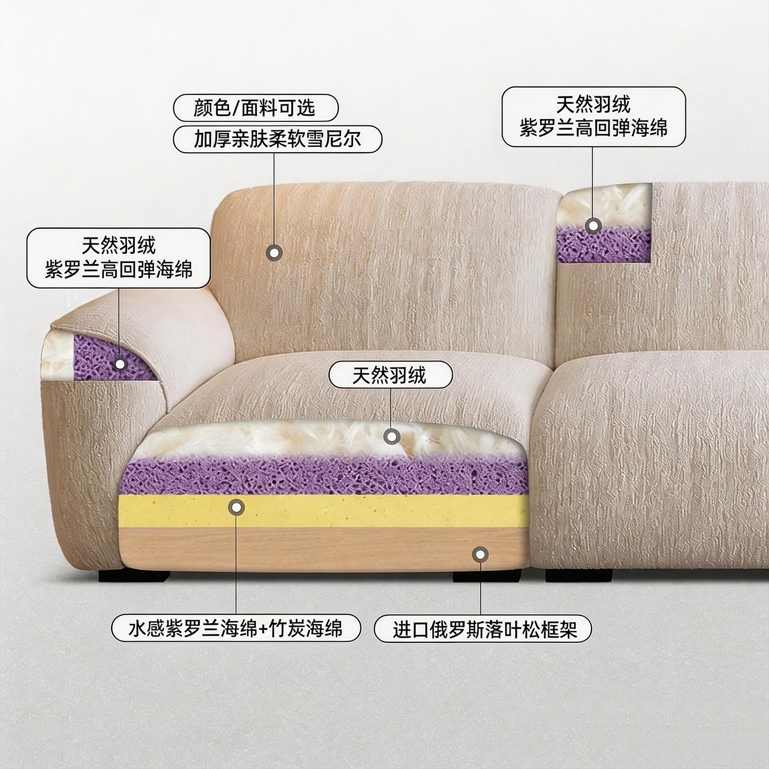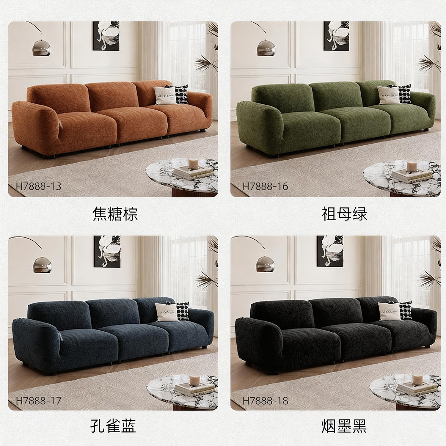 上进格兰德沙发花瓣雪尼尔法式客厅直排可调节靠背诧寂风布艺沙发