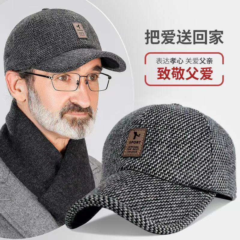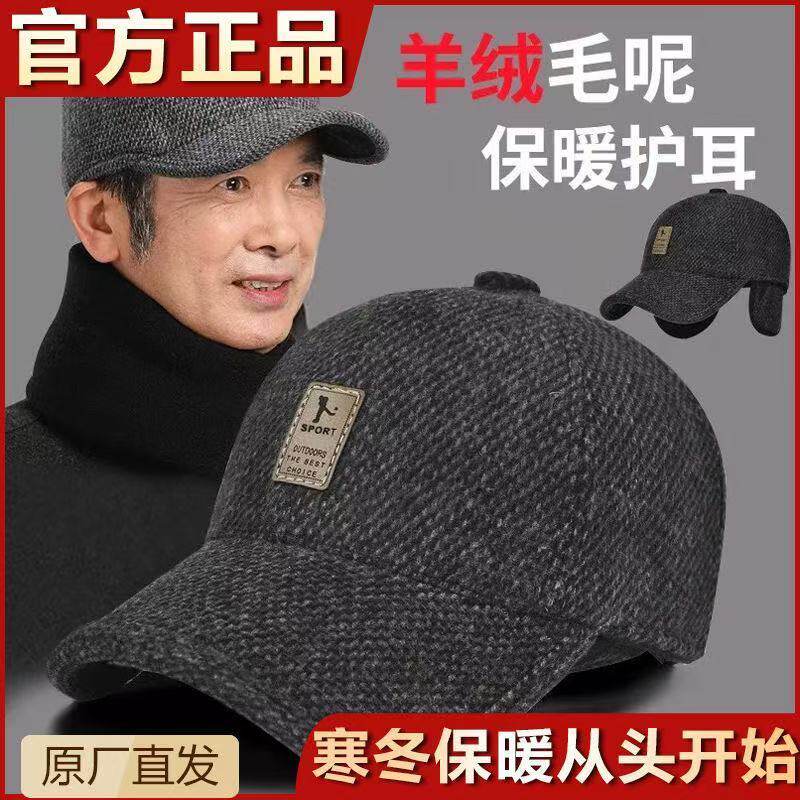 秋冬季加厚保暖中老年人帽子鸭舌帽老人帽爸爸帽男护耳毛呢棒球帽