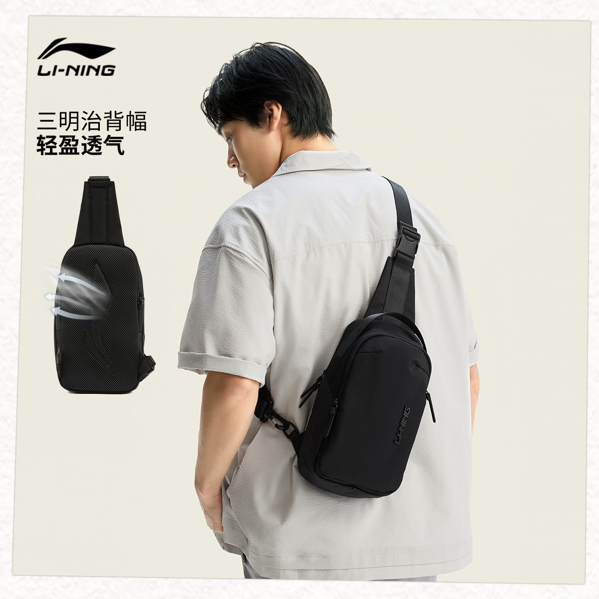 李宁斜挎包男士2026新款多功能休闲胸包实用多分区防泼水单肩包女