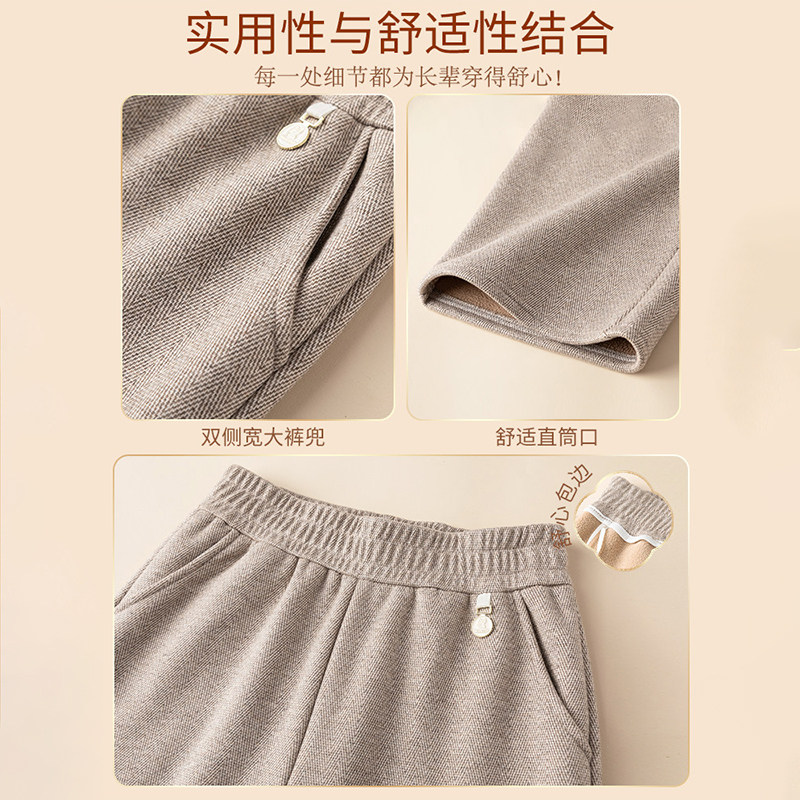 雅鹿中老年人女裤秋冬季毛呢裤子妈妈加绒加厚休闲裤春秋款直筒裤