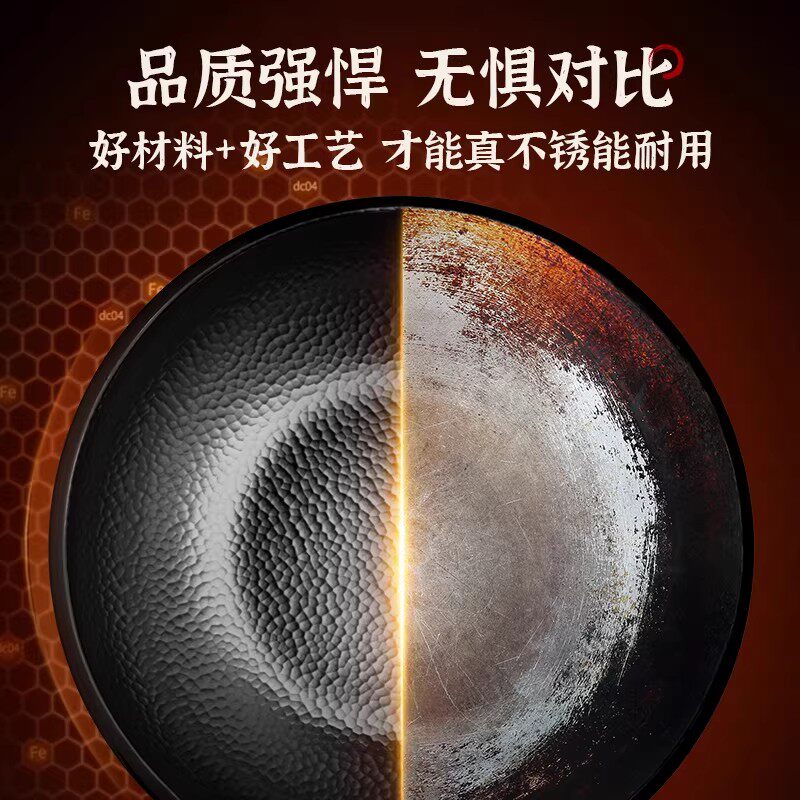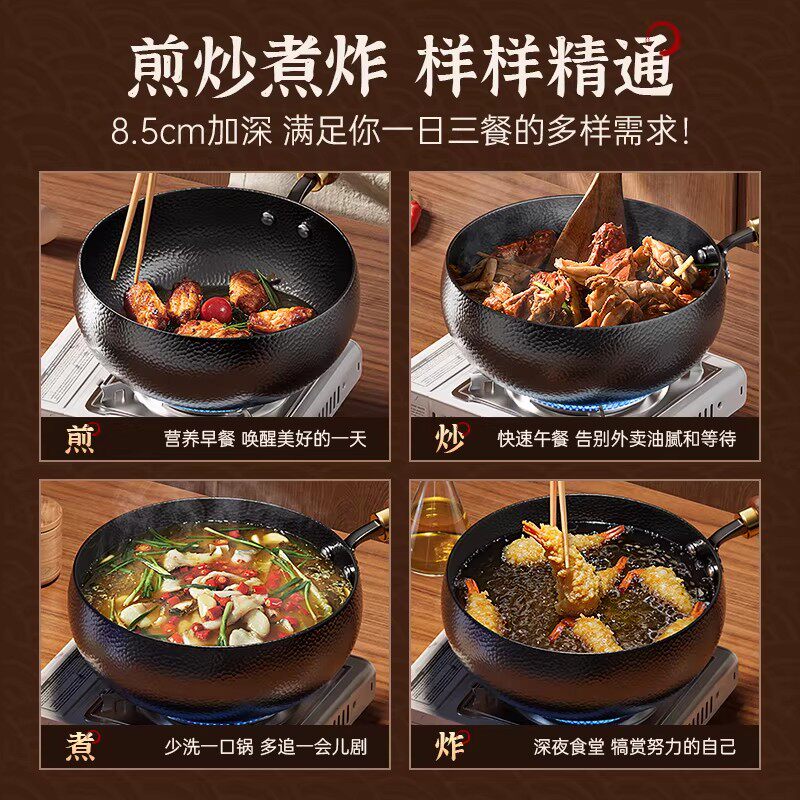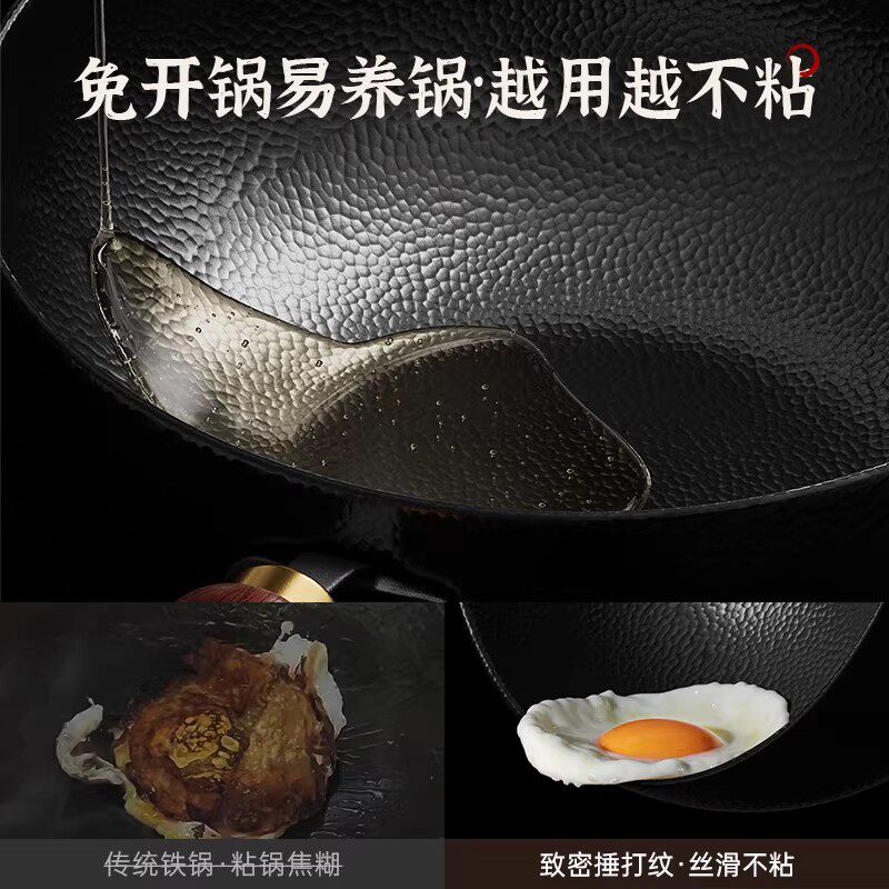 铁锅官方旗舰炒菜锅老式炒锅铁锅家用不粘锅无涂层燃气灶适用