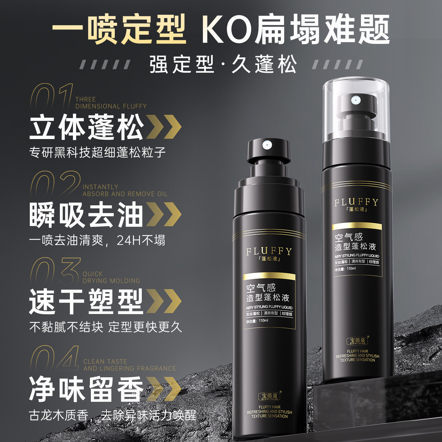 头发造型蓬松水发胶喷雾定型持久免洗男女打底干发发泥发型去油
