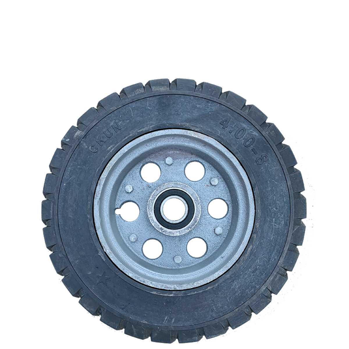 ALI6农用400-8脚轮充气轮橡胶实心轮带轴重载独轮滚轮手推车加厚