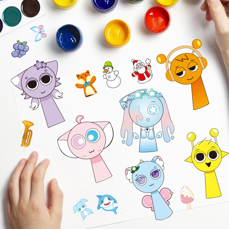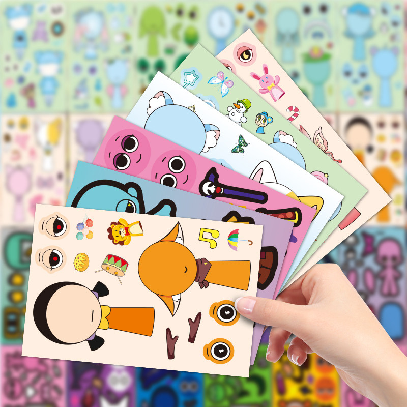 爆款贴纸卡通变装益智自粘贴节奏盒子DIY换装换脸贴画可爱手账贴创儿童互动娱乐粘画帖36张畅玩不重样