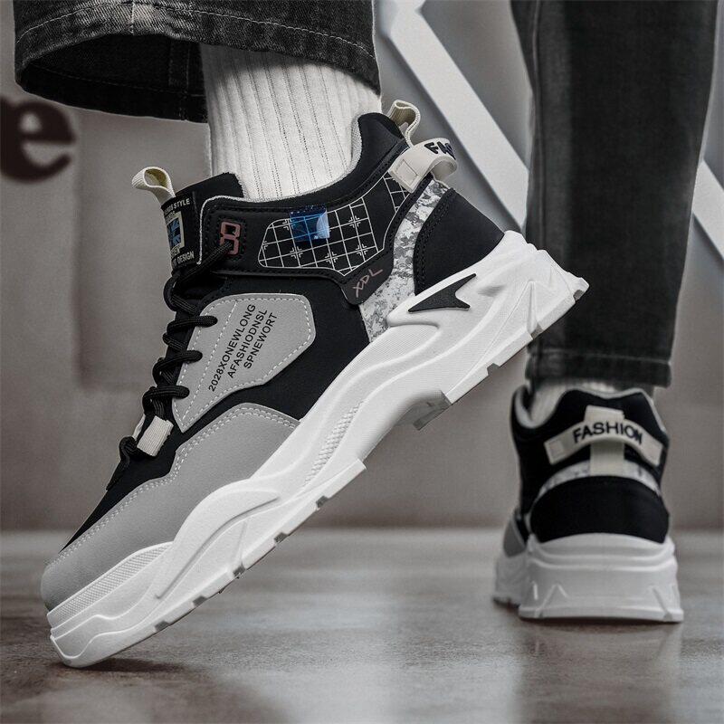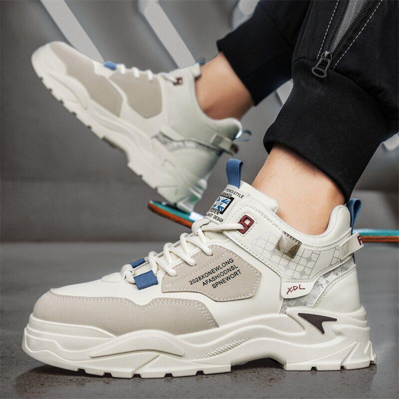 品牌断码男鞋春季皮面高帮厚底运动鞋休闲跑步老爹鞋子男潮鞋冬季
