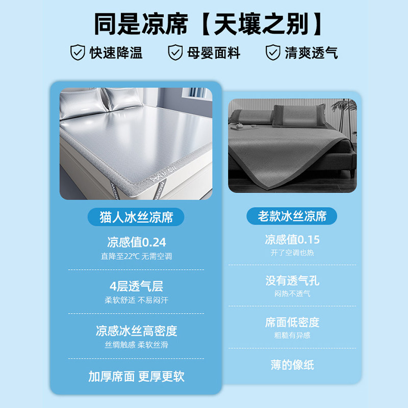 猫人夏天冰丝凉席2026新款软席子床笠可折叠竹席夏季草藤席可机洗