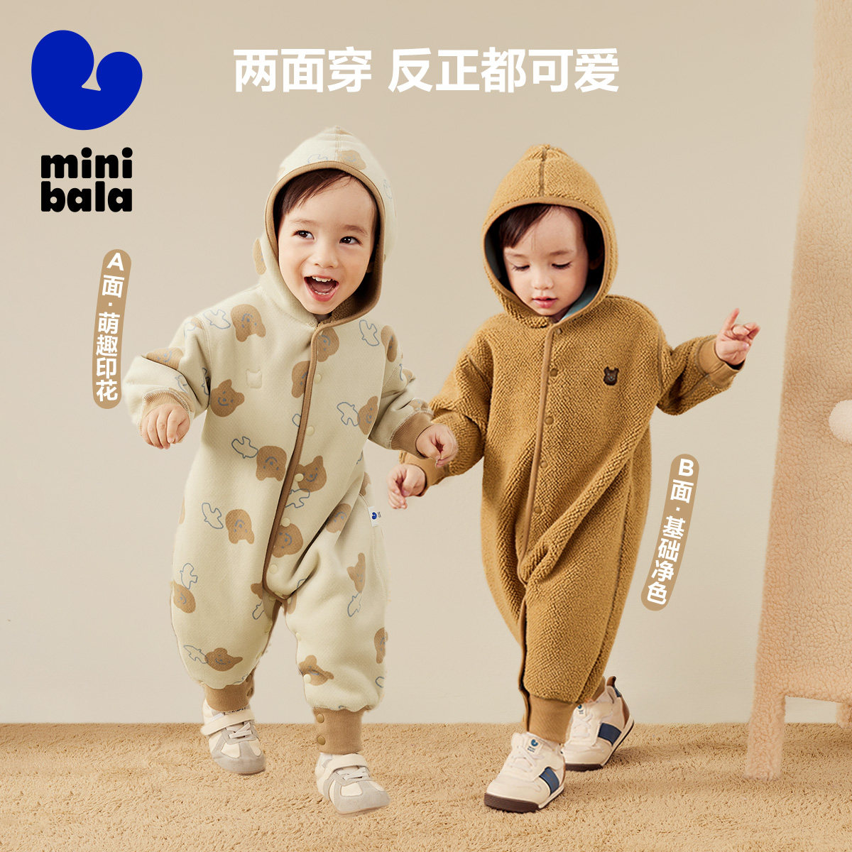 【暖芯绒绒衣】迷你巴拉巴拉外出连体衣毛绒宝宝婴儿爬服加绒加厚