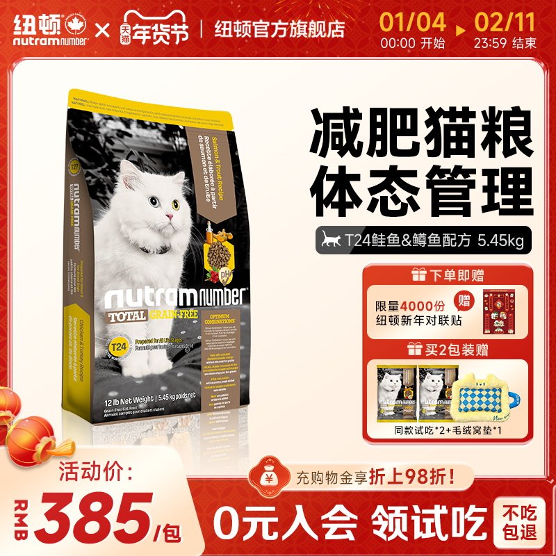 纽顿官方旗舰美国进口猫粮T24无谷鳟鱼配方幼成猫通用猫粮5.45kg