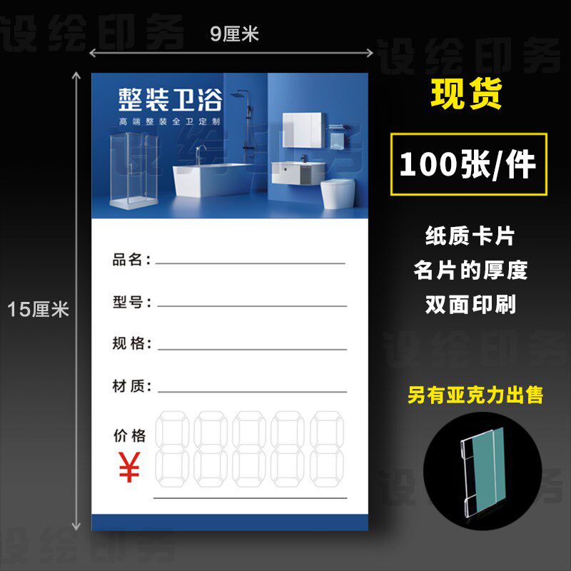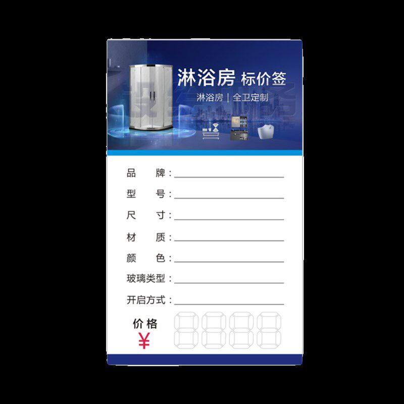 淋浴房标价签价格牌纸卫浴类定制价格展示牌卡价格签价目表