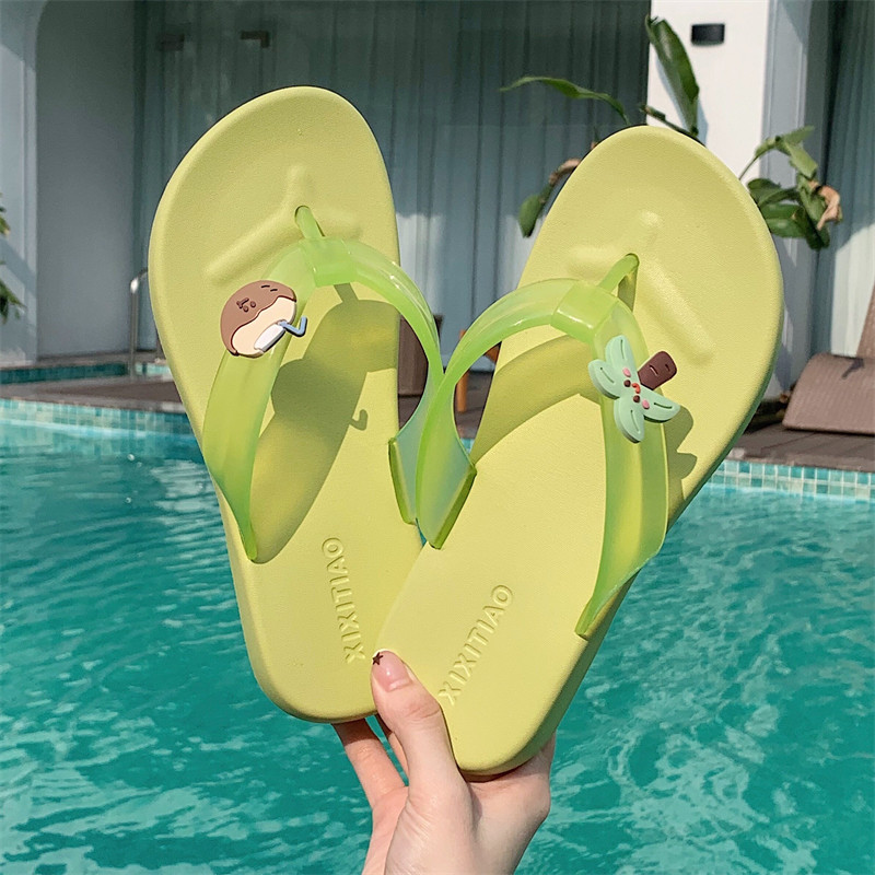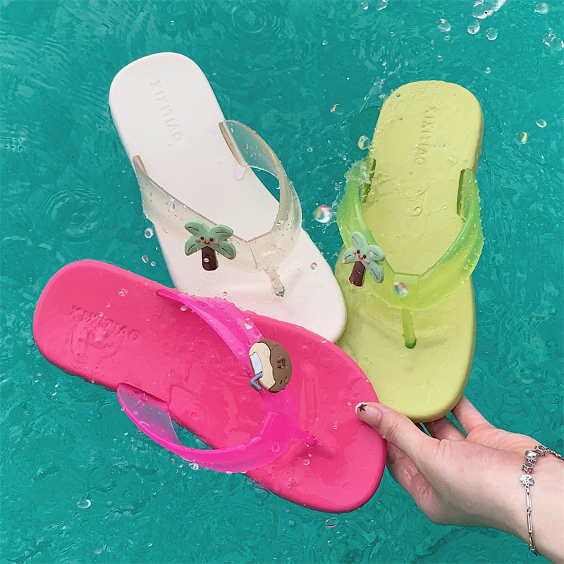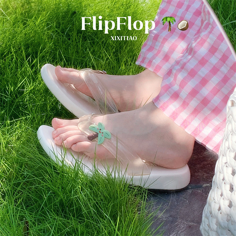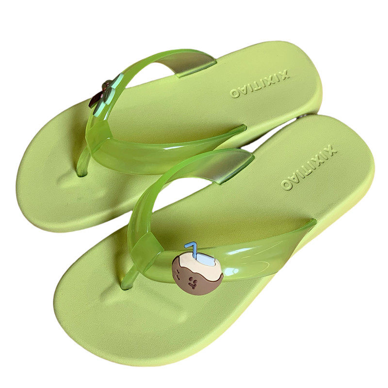 细细条夏季度假风椰子椰树防滑凉拖鞋女时尚百搭人字拖绿色玫红色