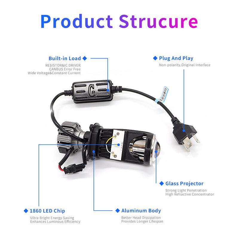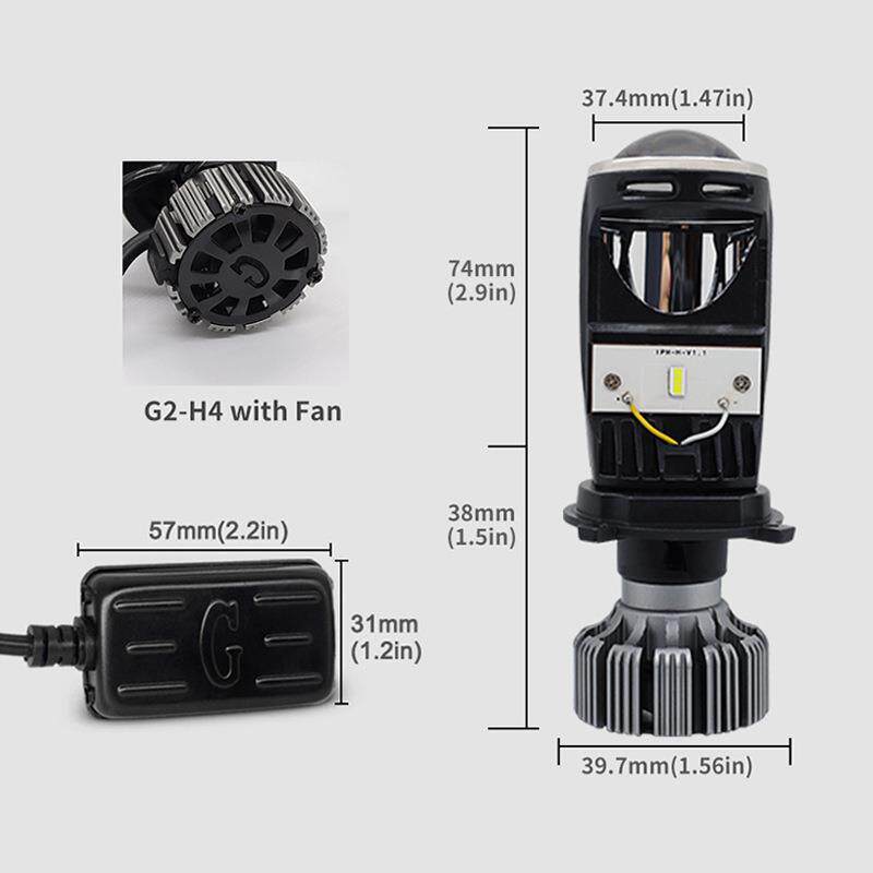 亚马逊热销 G2汽车LED透镜大灯H4改装前照灯鱼眼带风扇远近光一体