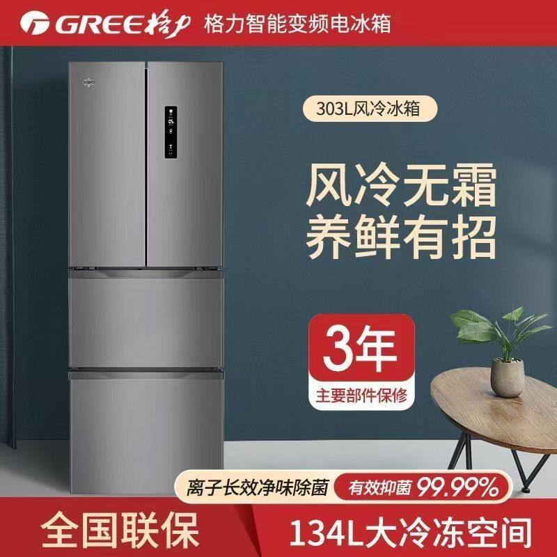 格力晶弘303L法式四门风冷无霜除菌净味深冻保鲜变频家用节能冰箱