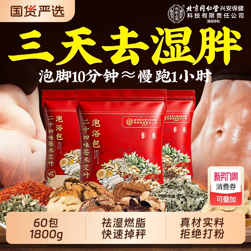 北京同仁堂泡脚药包去湿气排毒助睡眠红花椒干生姜艾草叶的足浴包