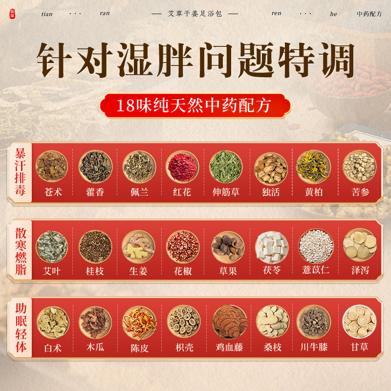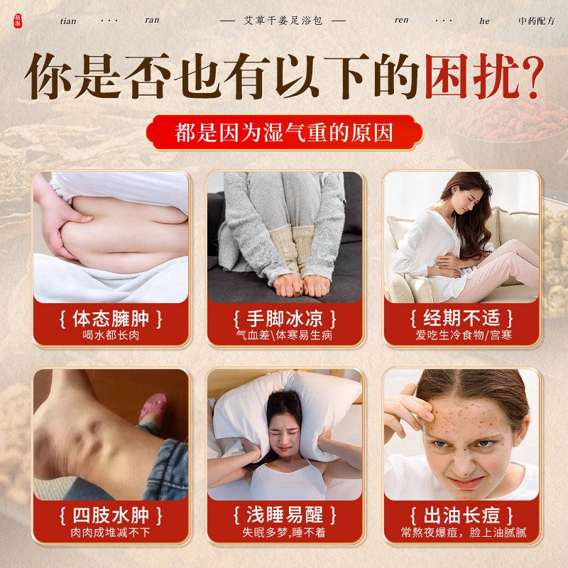 泡脚药包去湿气排毒助睡眠艾草叶生姜花椒红花中药非祛湿寒足浴包
