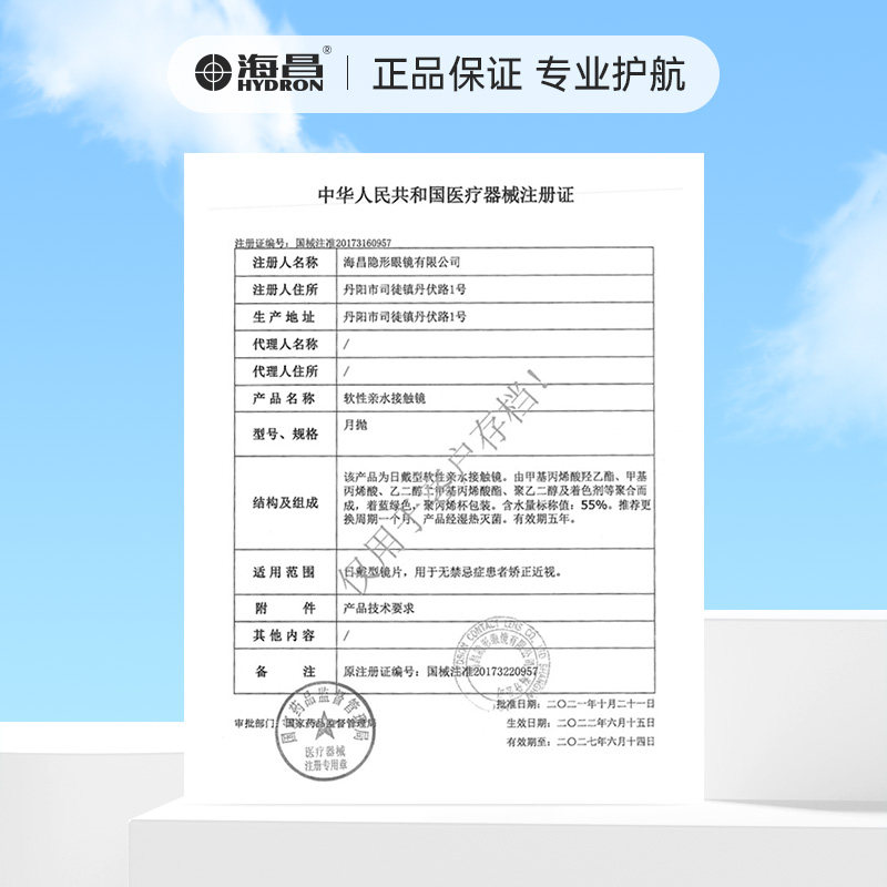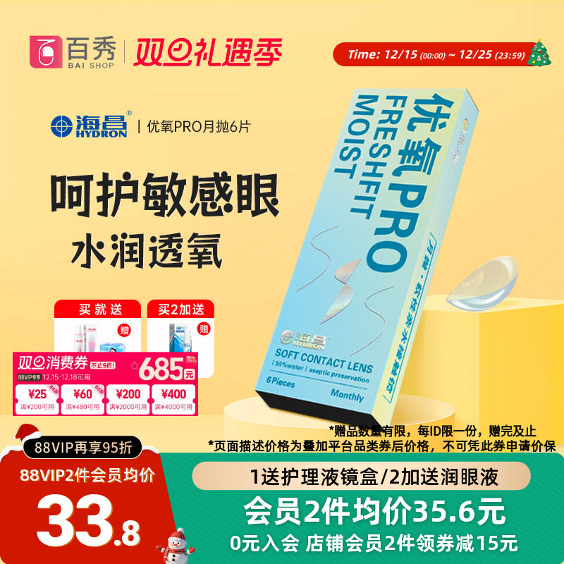 海昌隐形近视眼优氧月抛6片透明镜片非日 半年抛高清水润官网正品