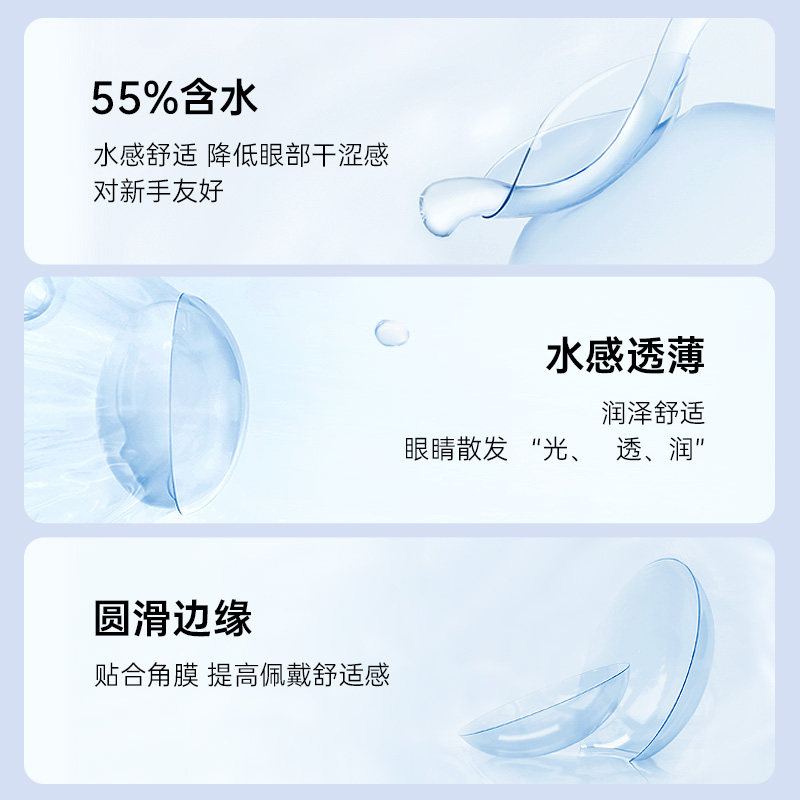 强生安视优旗舰店近视隐形眼镜润眸双周抛6片半月抛舒适透明眼镜